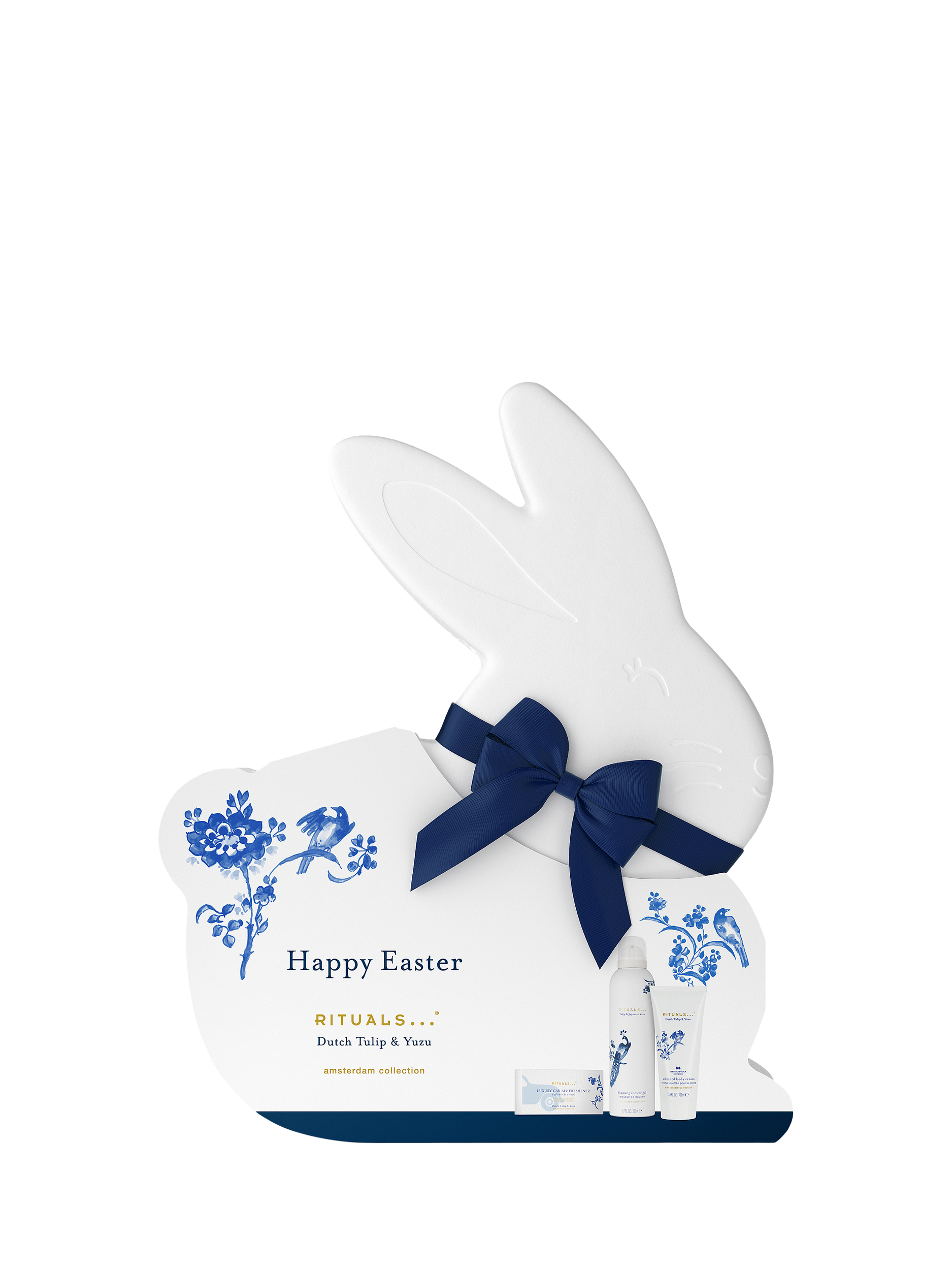 This limited-edition Easter bunny-shaped gift set is a wonderful surprise. It contains three delightful treats from the Amsterdam Collection: a luxurious shower foam, a creamy body cream, and a stylish car air freshener.