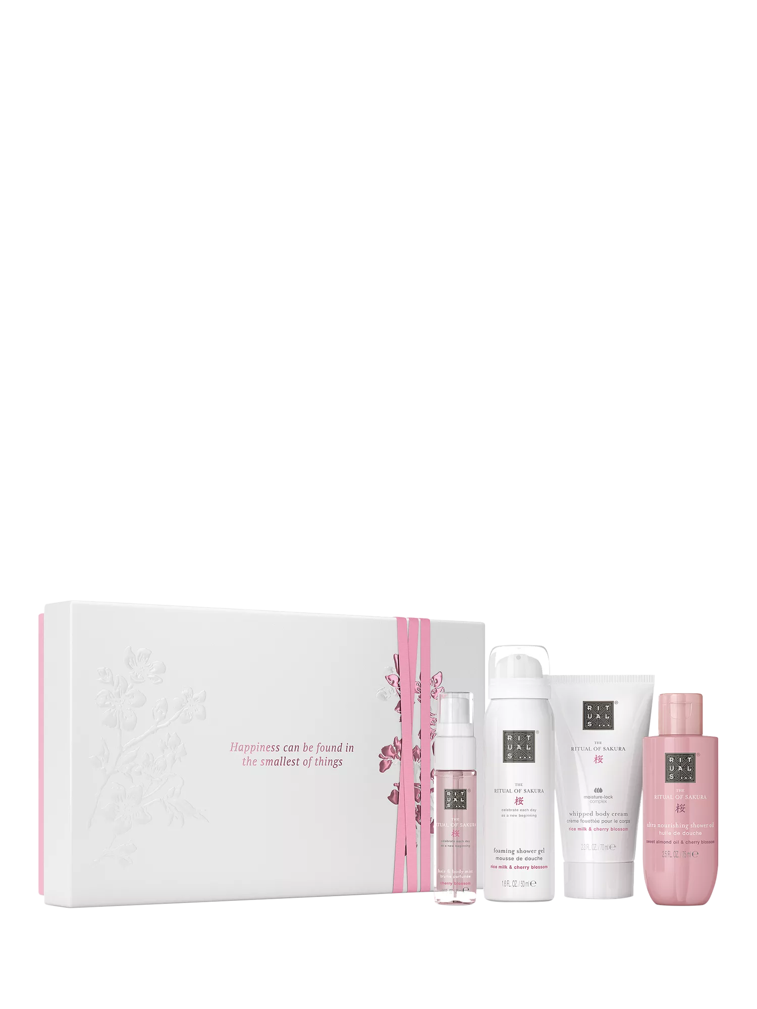 Celebrate each day as a new beginning with The Ritual of Sakura Small Gift Set, enriched with cherry blossom and rice milk. Inside, you'll find a shower foam, shower oil, body cream and hair & body mist. This collection brings a touch of luxury to your daily routine, leaving skin feeling soft and delicately fragranced.
