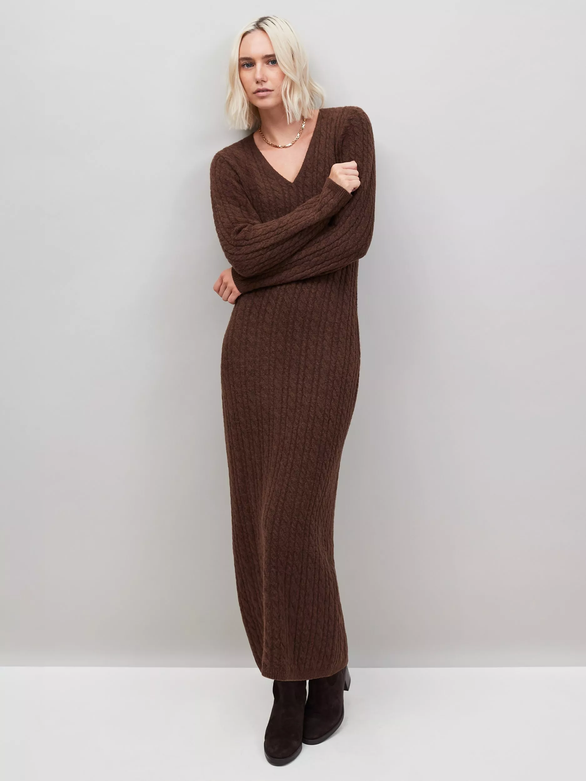 This long sleeved cotton mix maxi dress by Ro&Zo has a V-neck and beautifully textured feel.