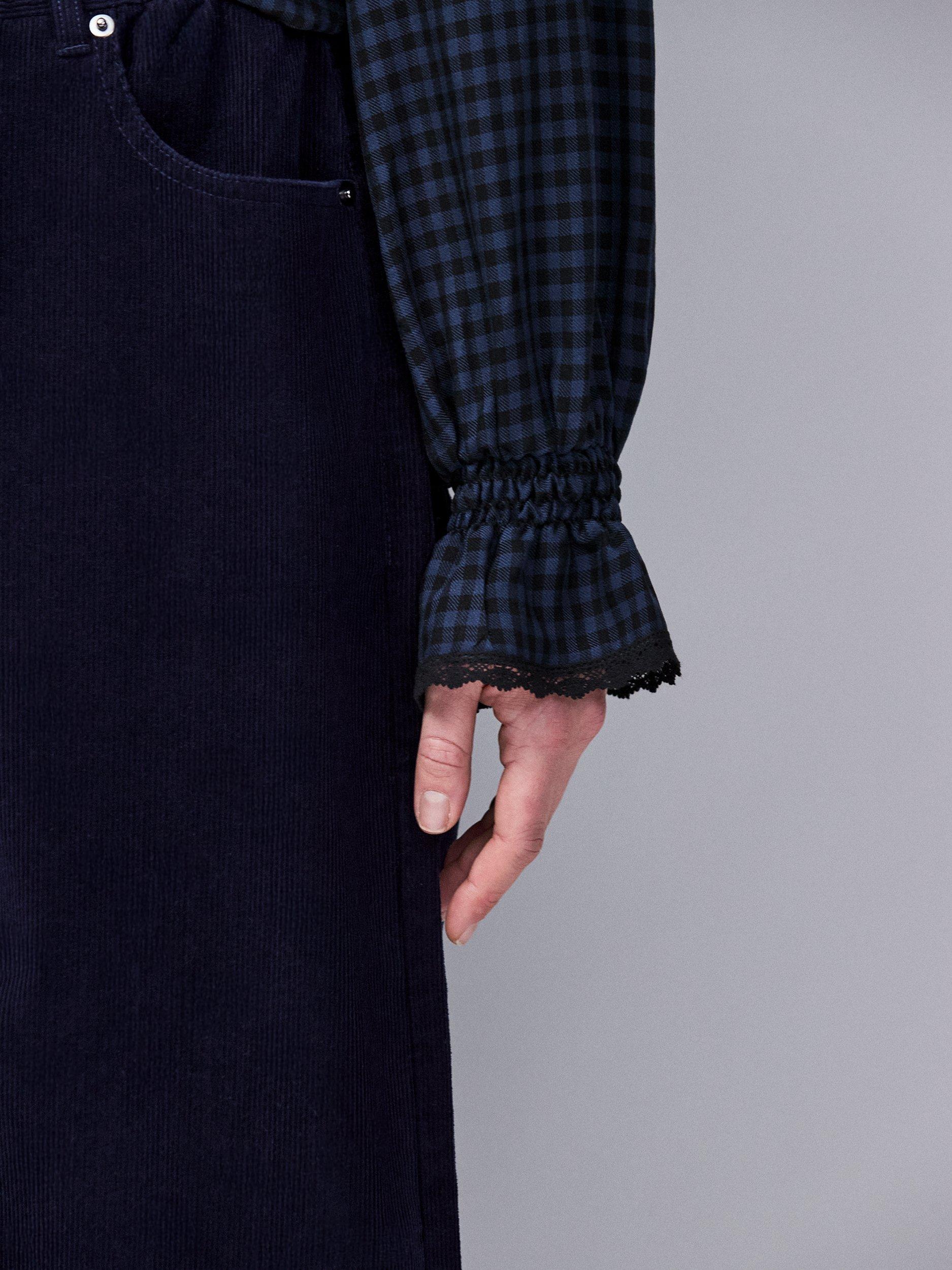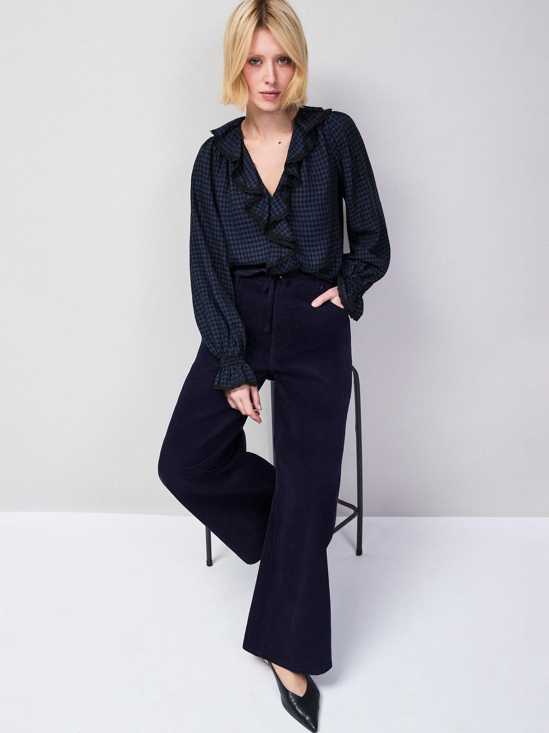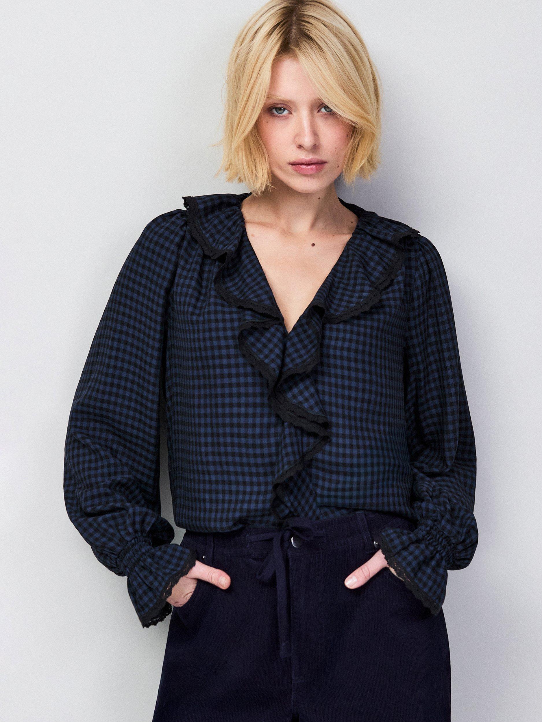 Ro&ZoCheck Ruffle Trim Top, Blue
