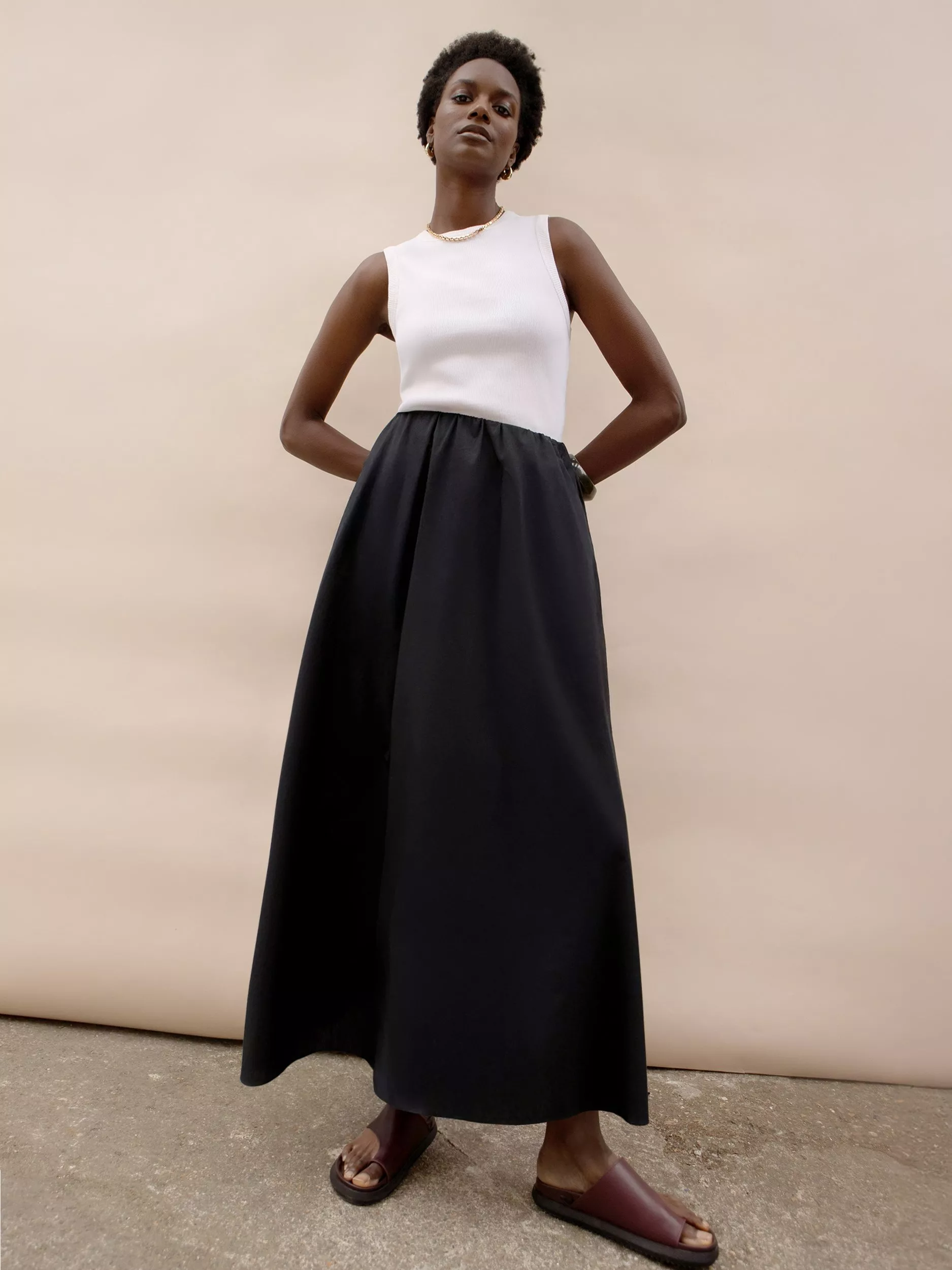 In an endlessly wearable A-line shape, this petite maxi skirt by Ro&Zo is made from pure cotton poplin.