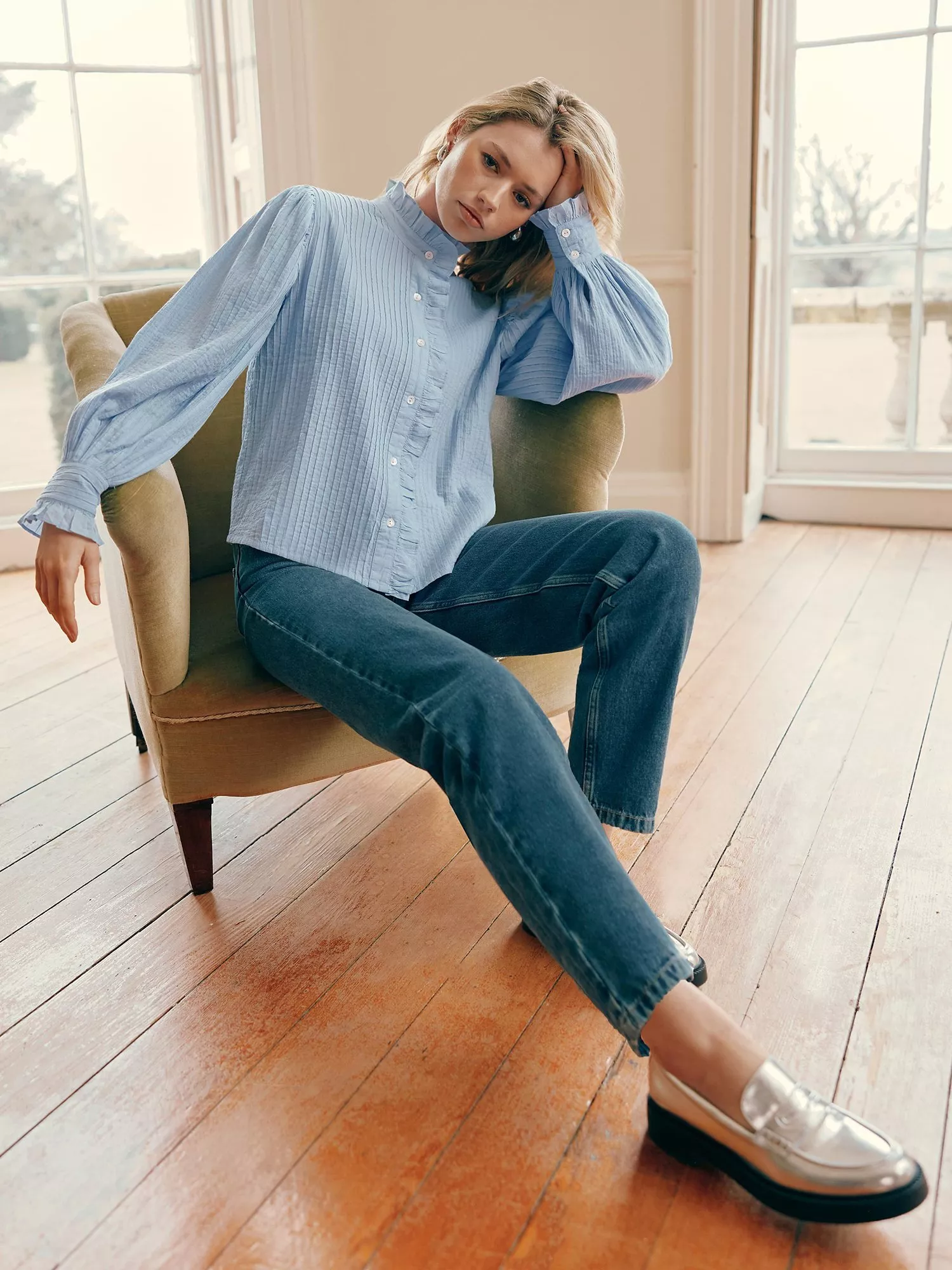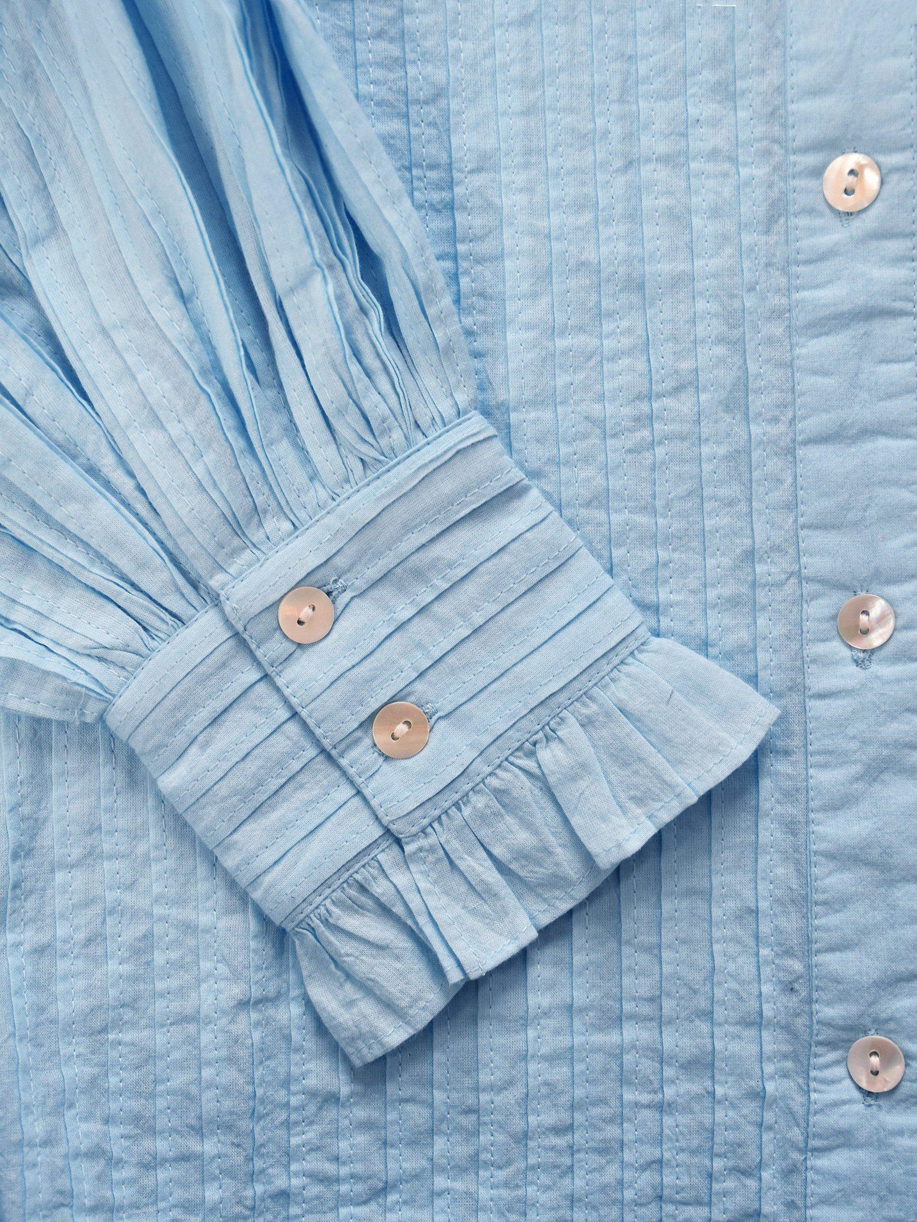Accented with a high neckline and long sleeves, it is light and breathable in cotton and is an easy daytime option.