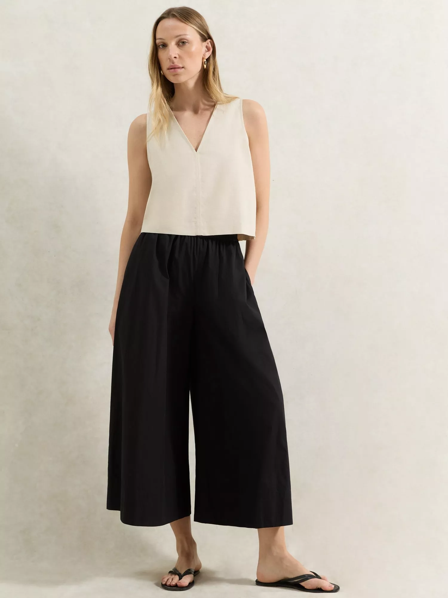 A pair of perfectly oversized, perfectly nonchalant palazzo culottes from Ro&Zo. Crafted from pure cotton poplin, they sit comfortably mid rise on the waist.