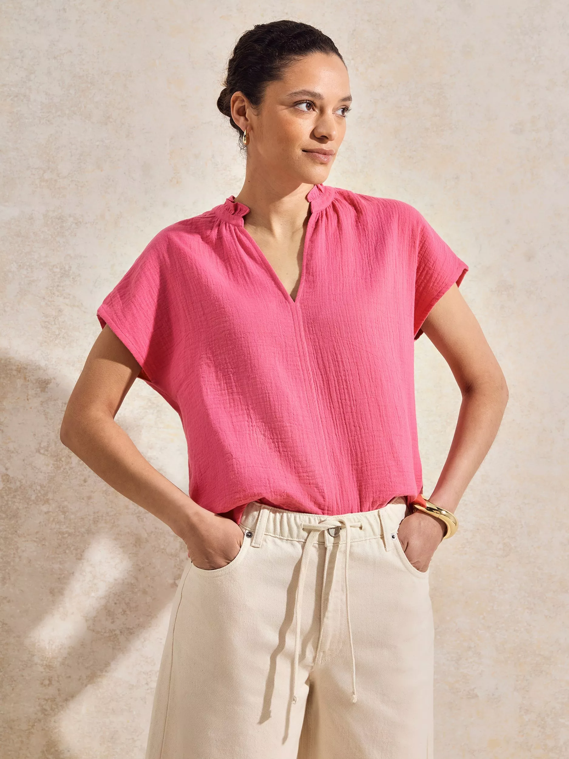 Carved out with a frilly v-neck and short sleeves, this top from Ro&Zo is made from soft cotton and is a relaxed staple for summer.