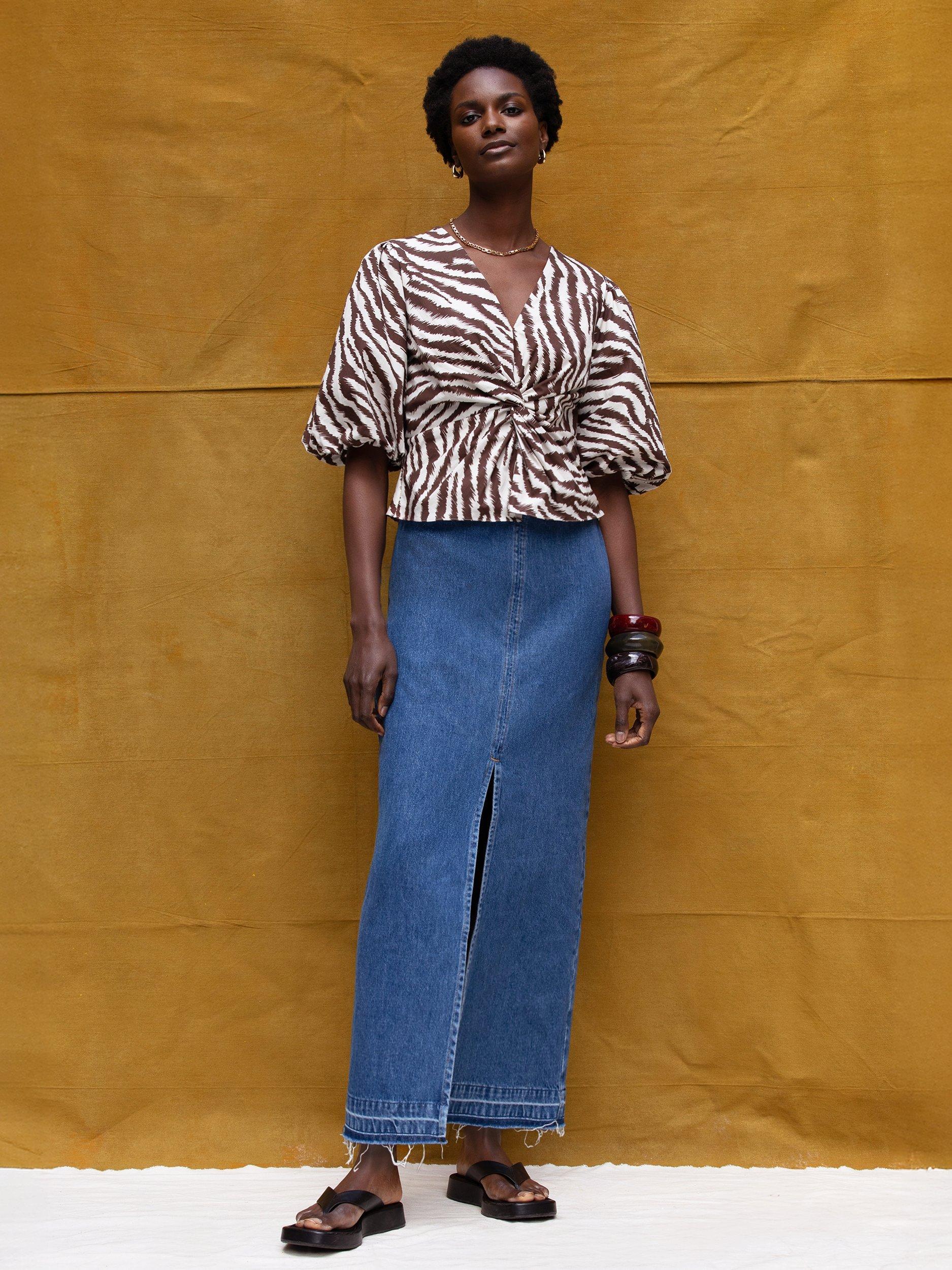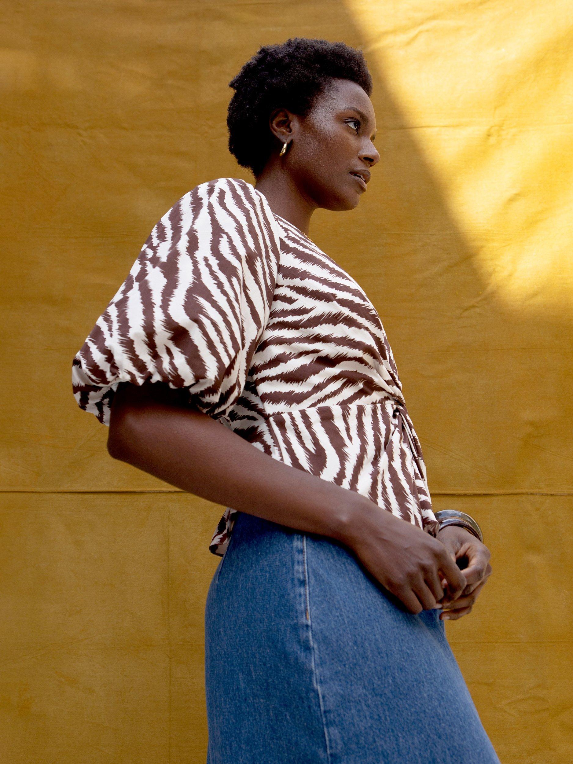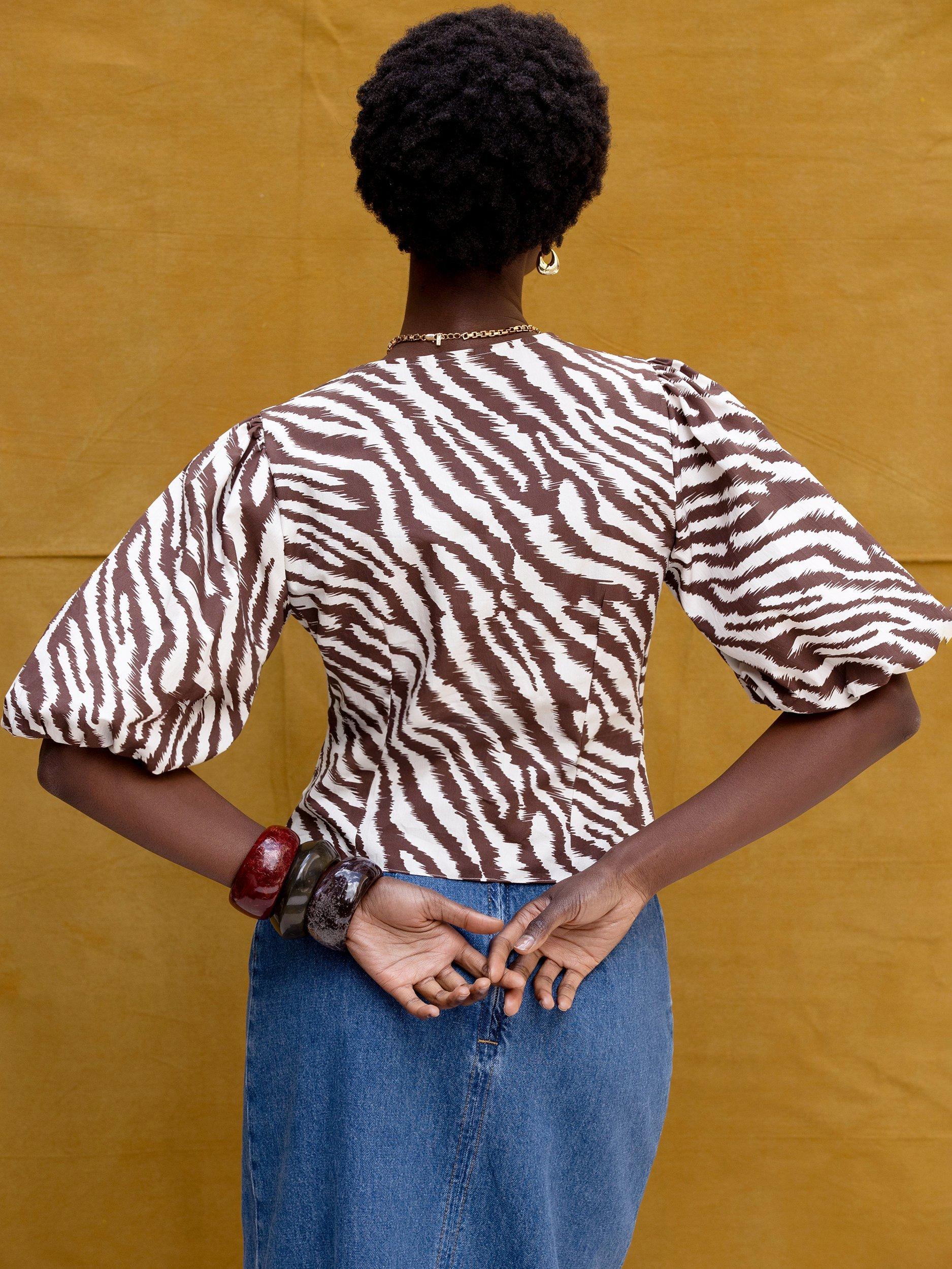 With a twist front, this blouse from Ro&Zo will become a firm favourite. With a v-neckline, elbow length puff sleeves and an all-over zebra print, it's made from cotton for comfortable wear.