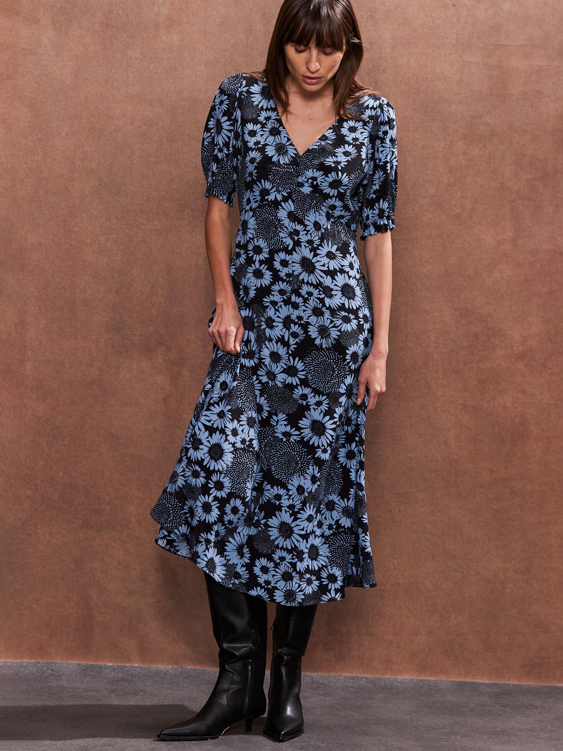 In an A-line shape with ruched detailing to draw the eye, this midi dress from Ro&Zo is crafted from an airy viscose fabric. With a fuss-free but smart v-neckline and short sleeves, it recalls the florals that we can't help but let define our collections season after season.
