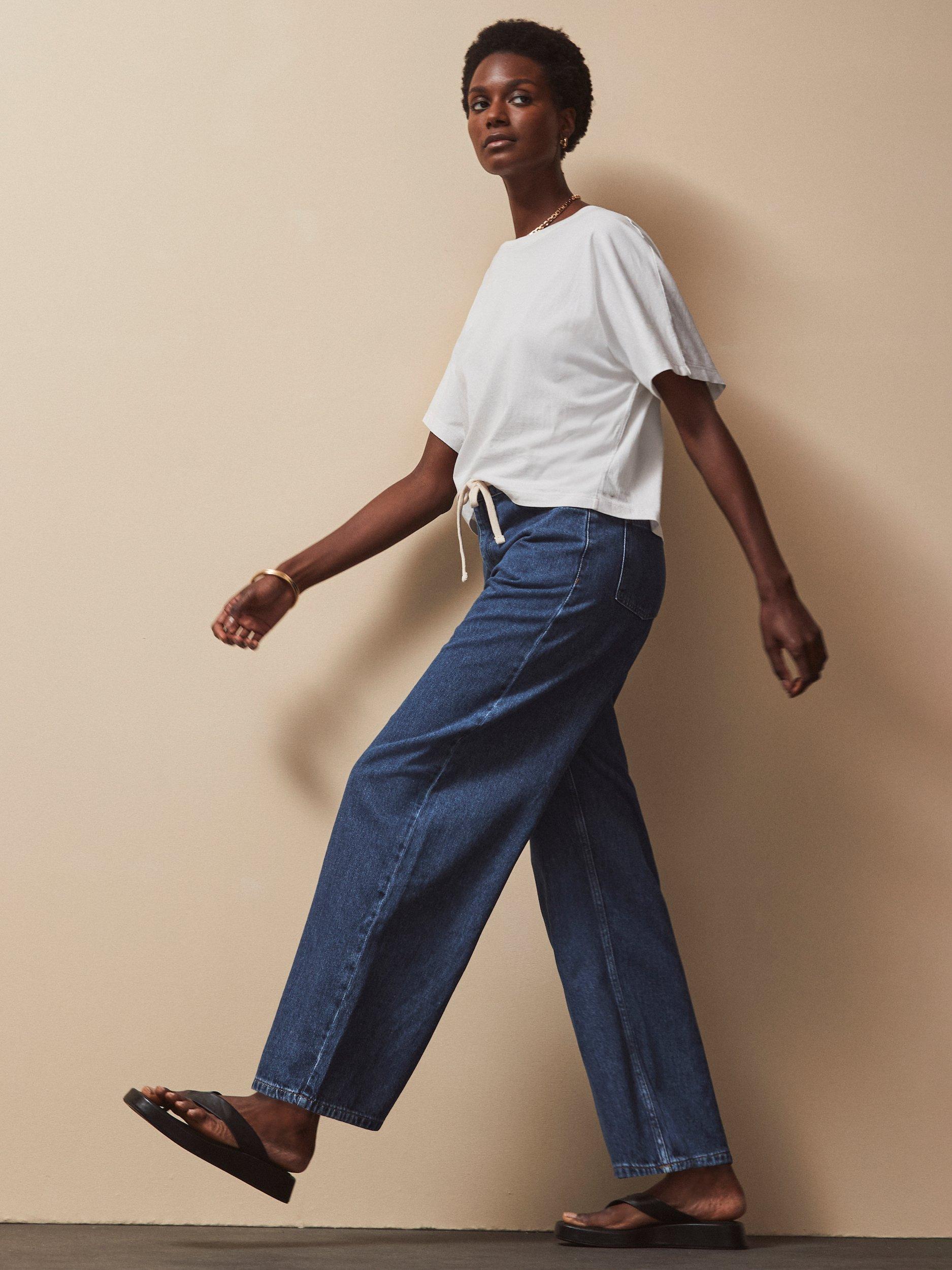 With a drawstring waist and a wide-leg silhouette, these mid rise jeans from Ro&Zo are composed from pure cotton for soft and breathable all day wear and have regular grazing hems.