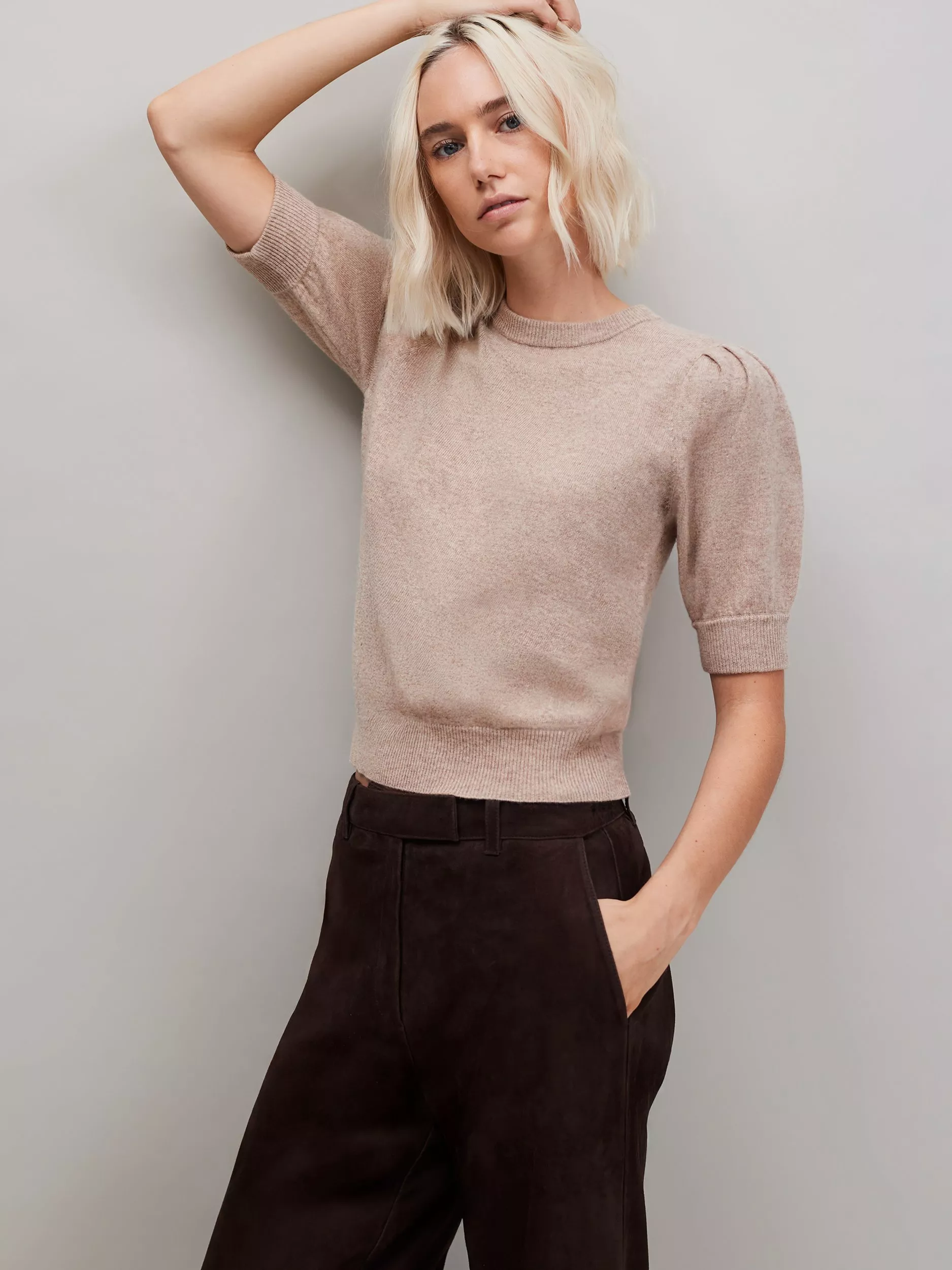 Topped with a round neck and short puffed sleeves, this mid-weight jumper by Ro&Zo has a touch of cashmere for a luxe feel.
