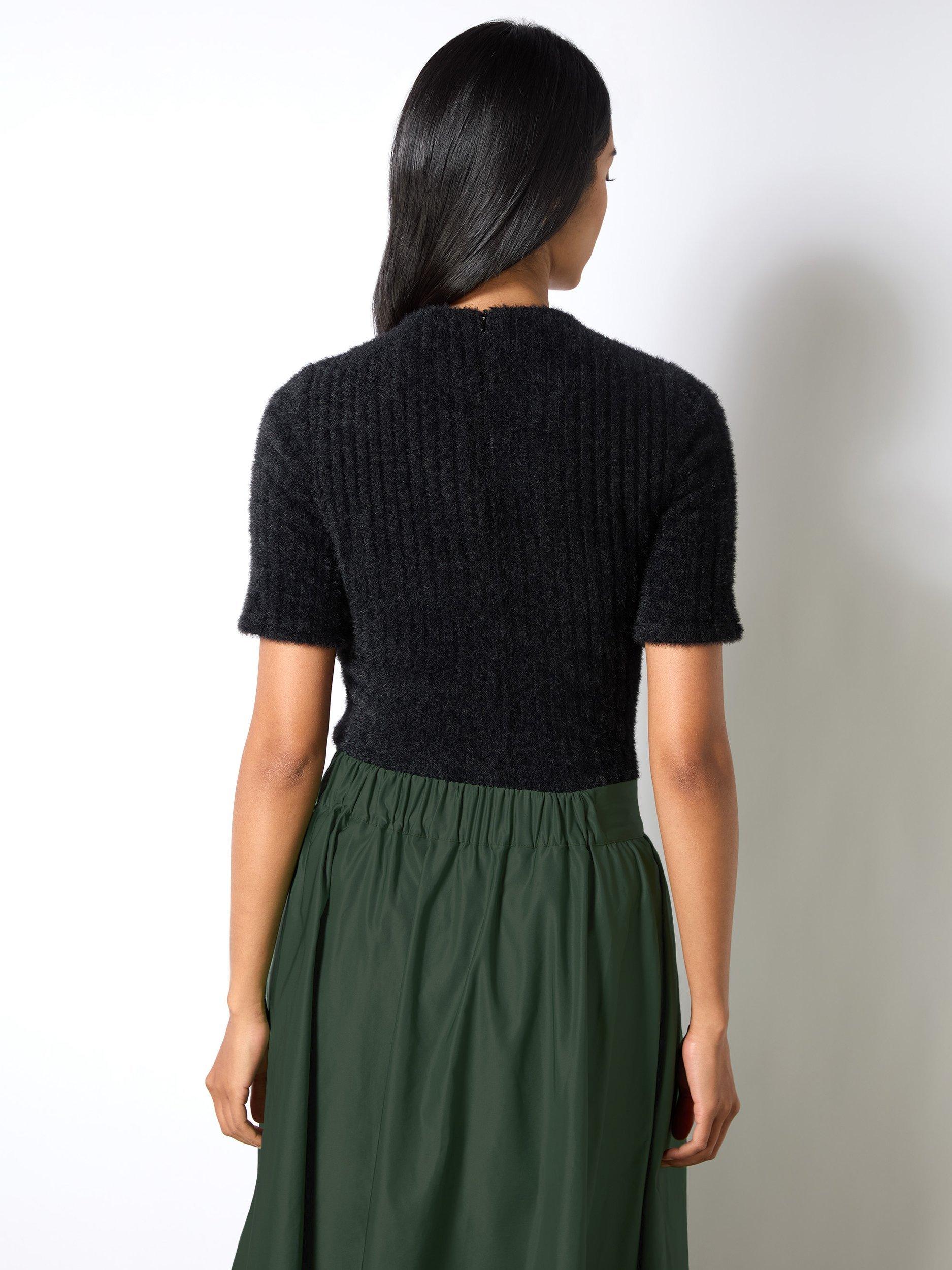 This fluffy rib top from Ro&Zo is a cosy and chic addition to any wardrobe. Made from a soft, fluffy textured fabric with a ribbed design, this top is versatile and easy to style. Ideal for casual outings or relaxed days at home, this autumn staple can be paired with jeans, skirts, or layered under jackets for a warm, stylish ensemble.