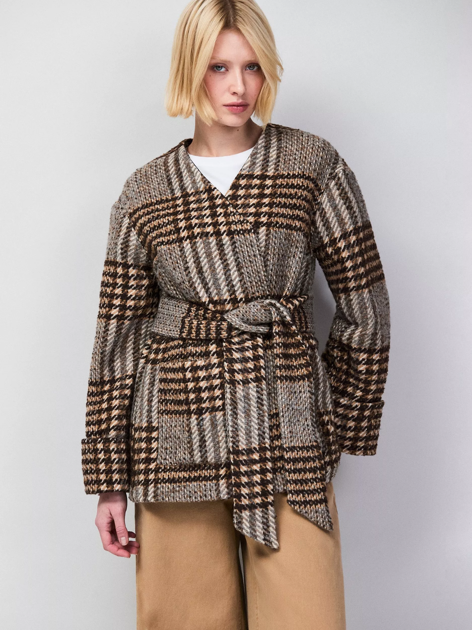 Designed with a V-neckline and keeping you in check with its classic print, it is made from blended fabric that can be easily thrown on over a smart-casual outfit when the weather's being unpredictable.