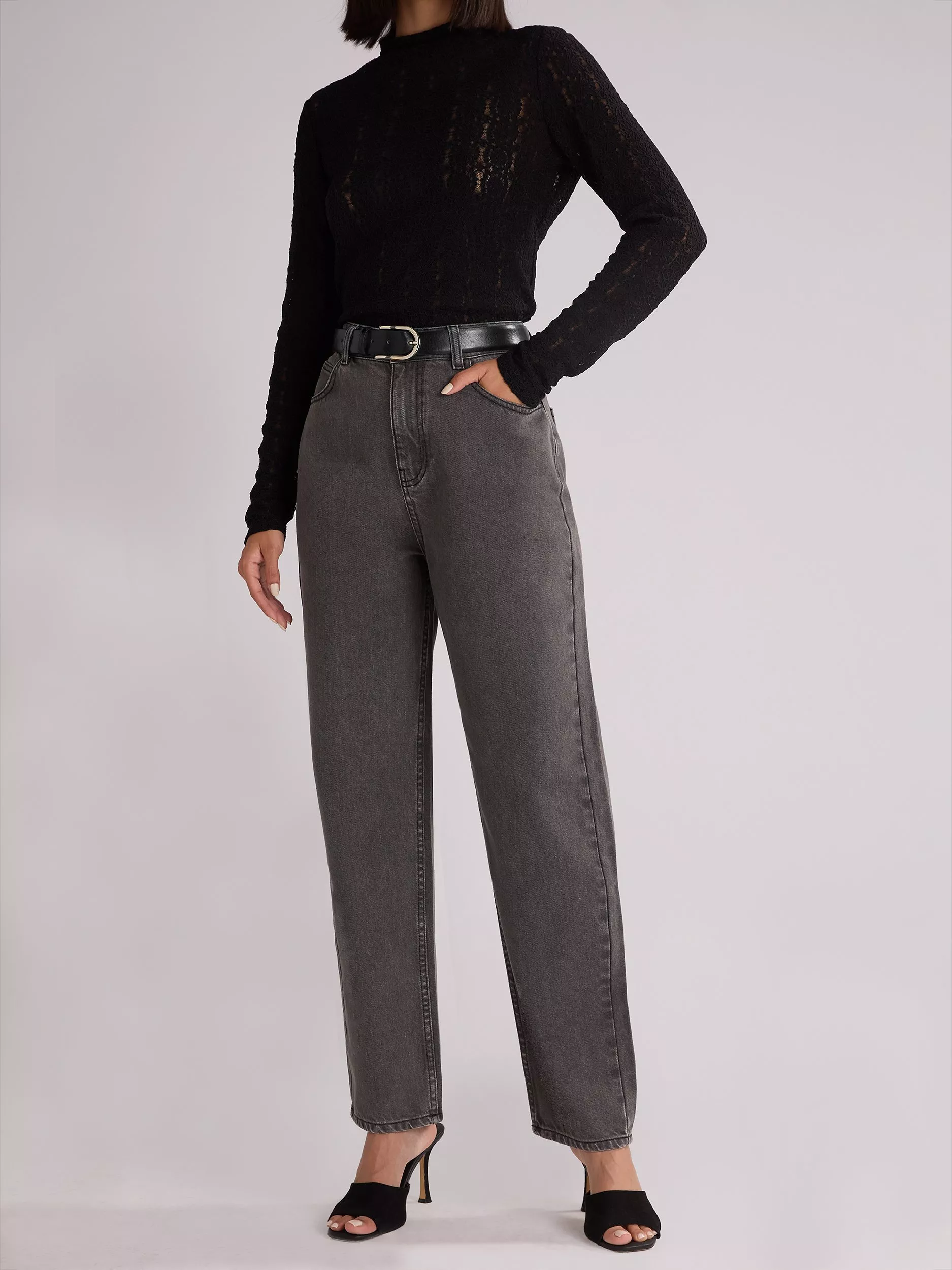 These Straight Leg Jeans are designed in a flattering high waisted silhouette, with classic 5 pocket detail and concealed zip fastening. Cut in a trendy denim that is 100% cotton, makes this a perfect staple to have in your wardrobe. Wear all year round with pretty blouses or knitwear.