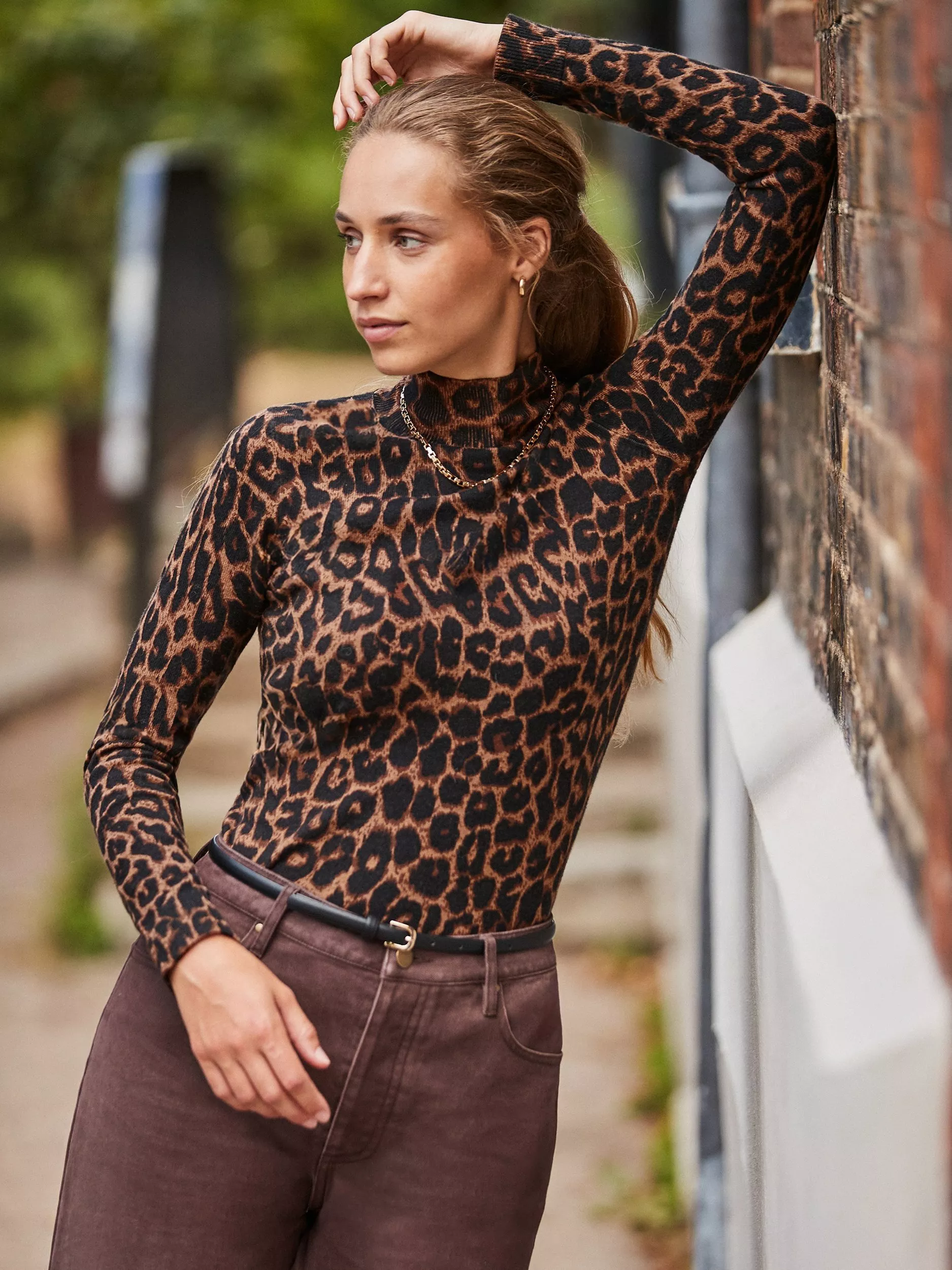 Enhancing your silhouette with a high neckline and long sleeves, this mid-weight animal knit jumper by Ro&Zo has a touch of cashmere for a luxe feel.