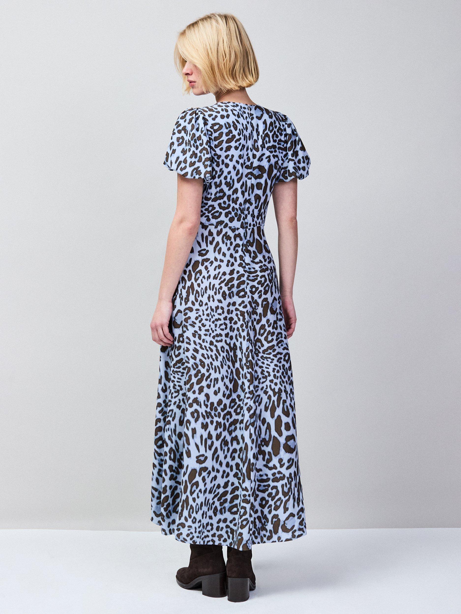A statement-making midi dress in a pop of leopard print. Its fit and flare design flatters your silhouette, while comfortable viscose and short puffed sleeves keep you cool for any summer day out.
