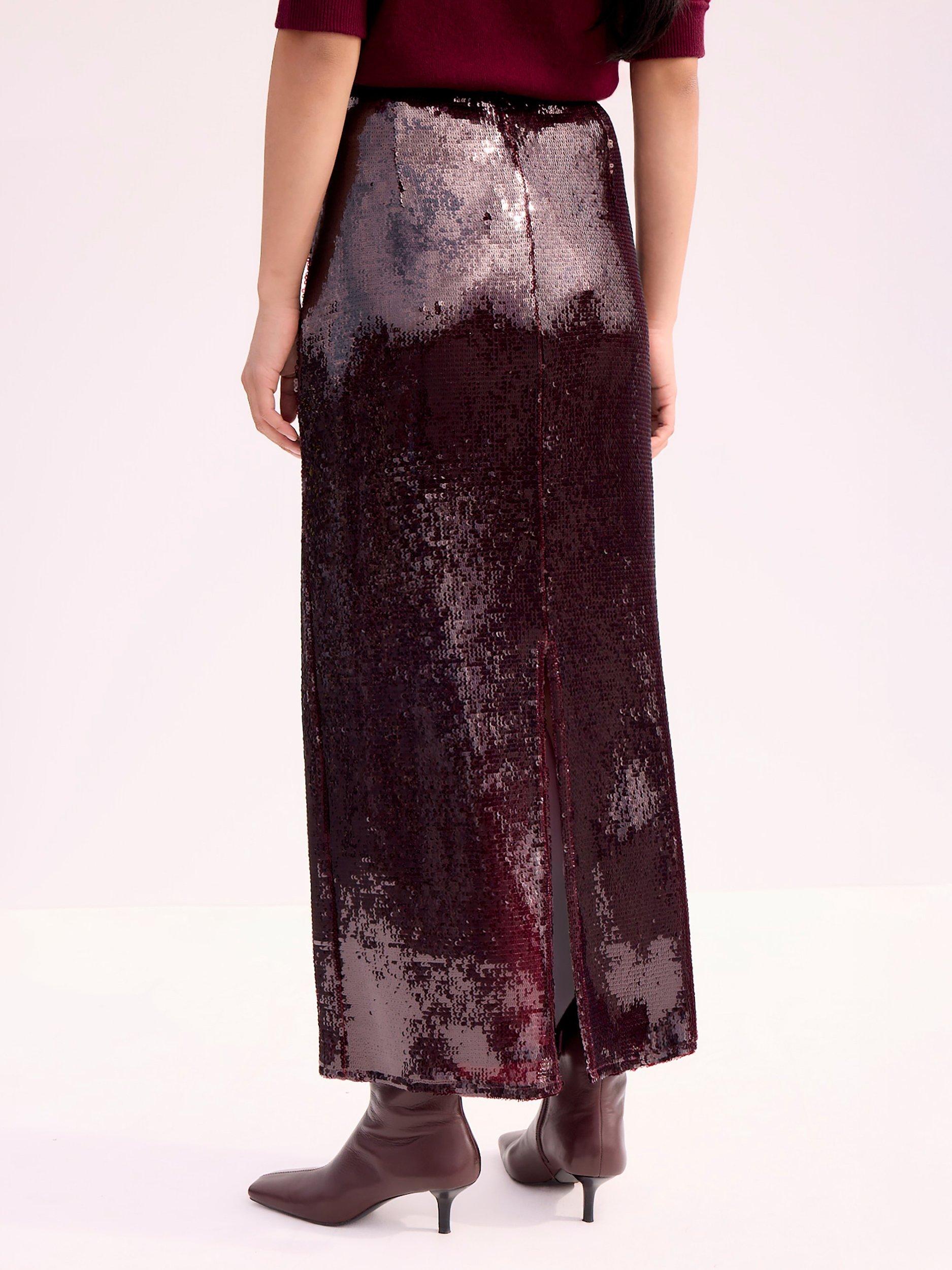 A lengthened skirt by Ro&Zo. In a sleek, understated shape, it's defined with all-over sequin embellishment. Secured by a zip closure.