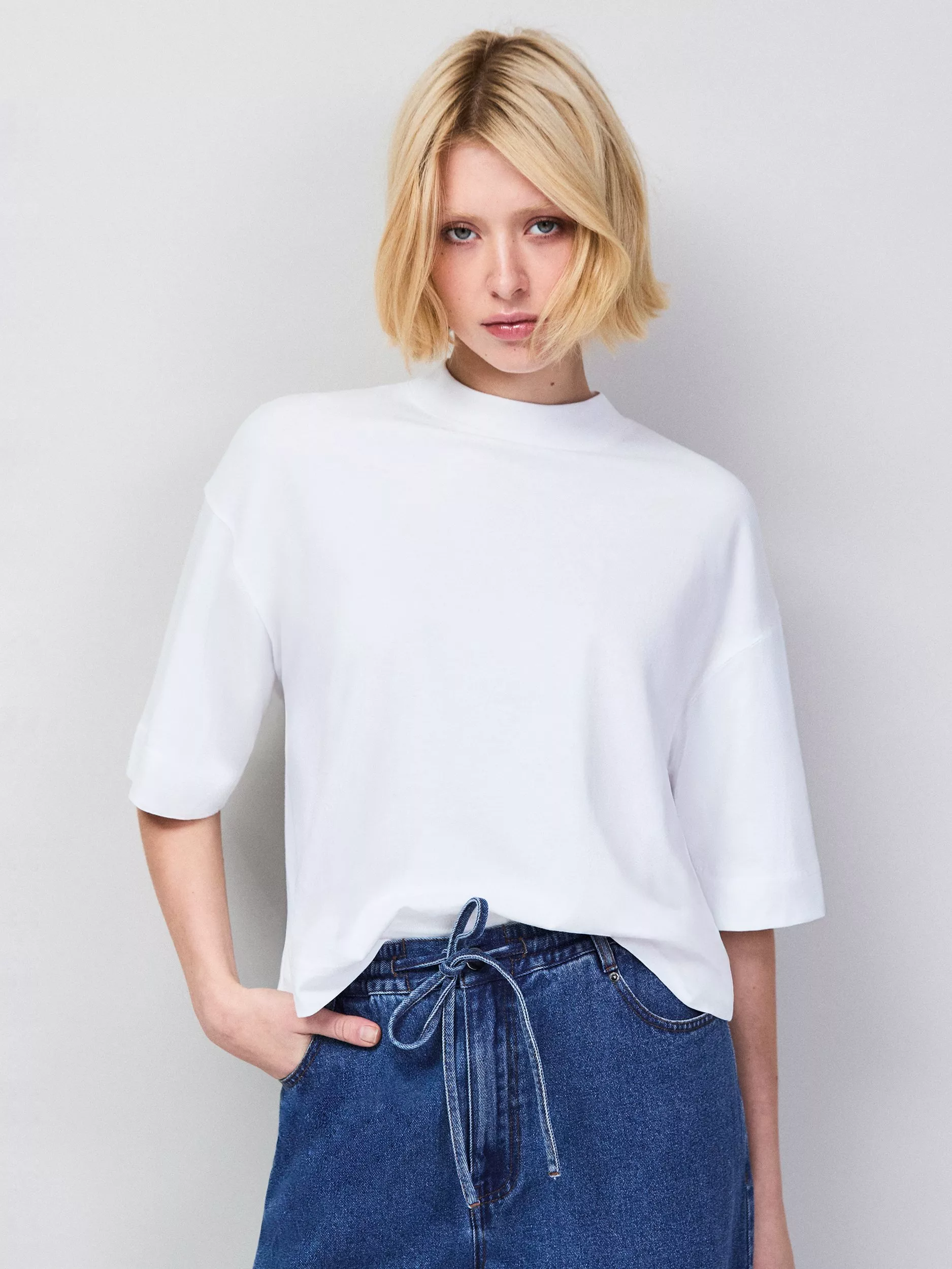 Ro&ZoMock Neck T-Shirt, White