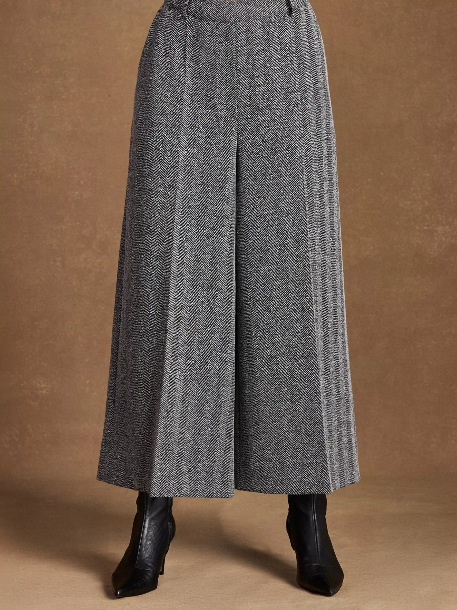 A pair of petite perfectly nonchalant wide-leg culottes from Ro&Zo. They sit mid rise with a concealed zip, herringbone checks and cropped hems.