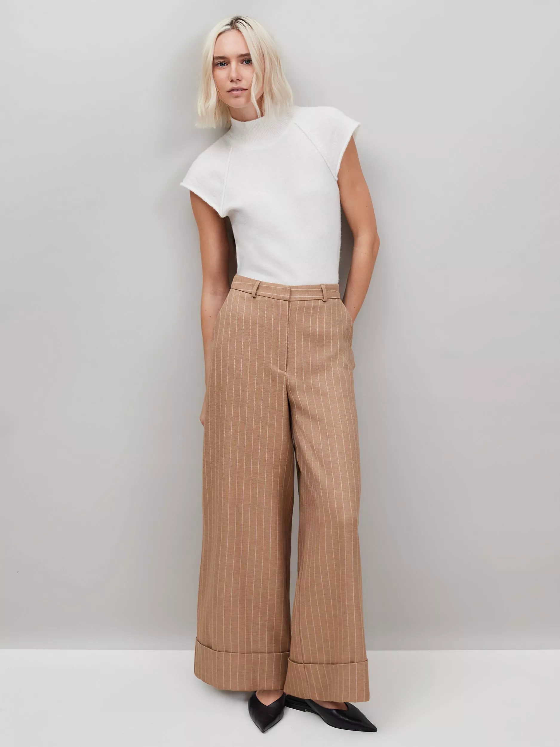 Cleverly tailored with a flattering wide leg, these pinstripe trousers make casual dressing feel fresh and inspiring, ensuring comfort and confidence whatever the day has in store.