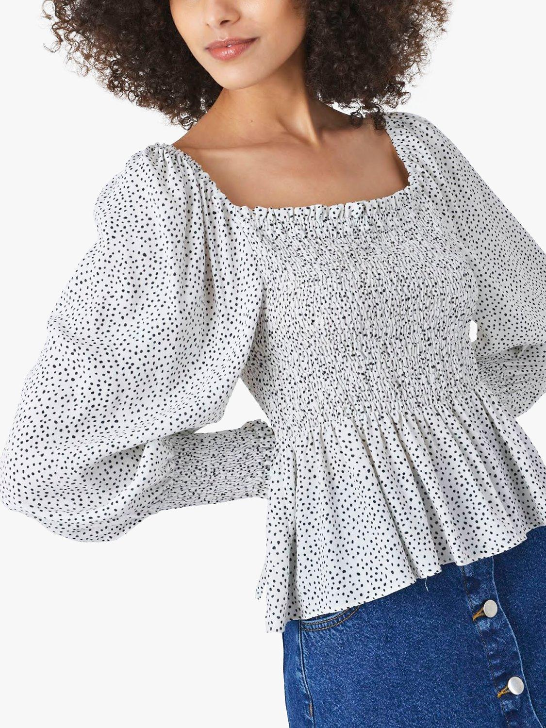 Ease into the new season with this fresh and modern style. Crafted from sustainable viscose and featuring black polka dots on an ivory ground, this top is cut for a flattering fit. Pair with your favourite jeans or dress up with heels and a clutch bag.