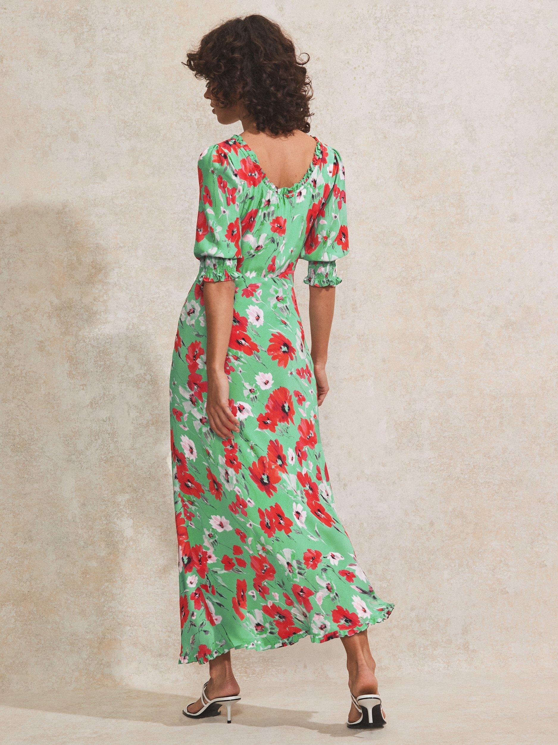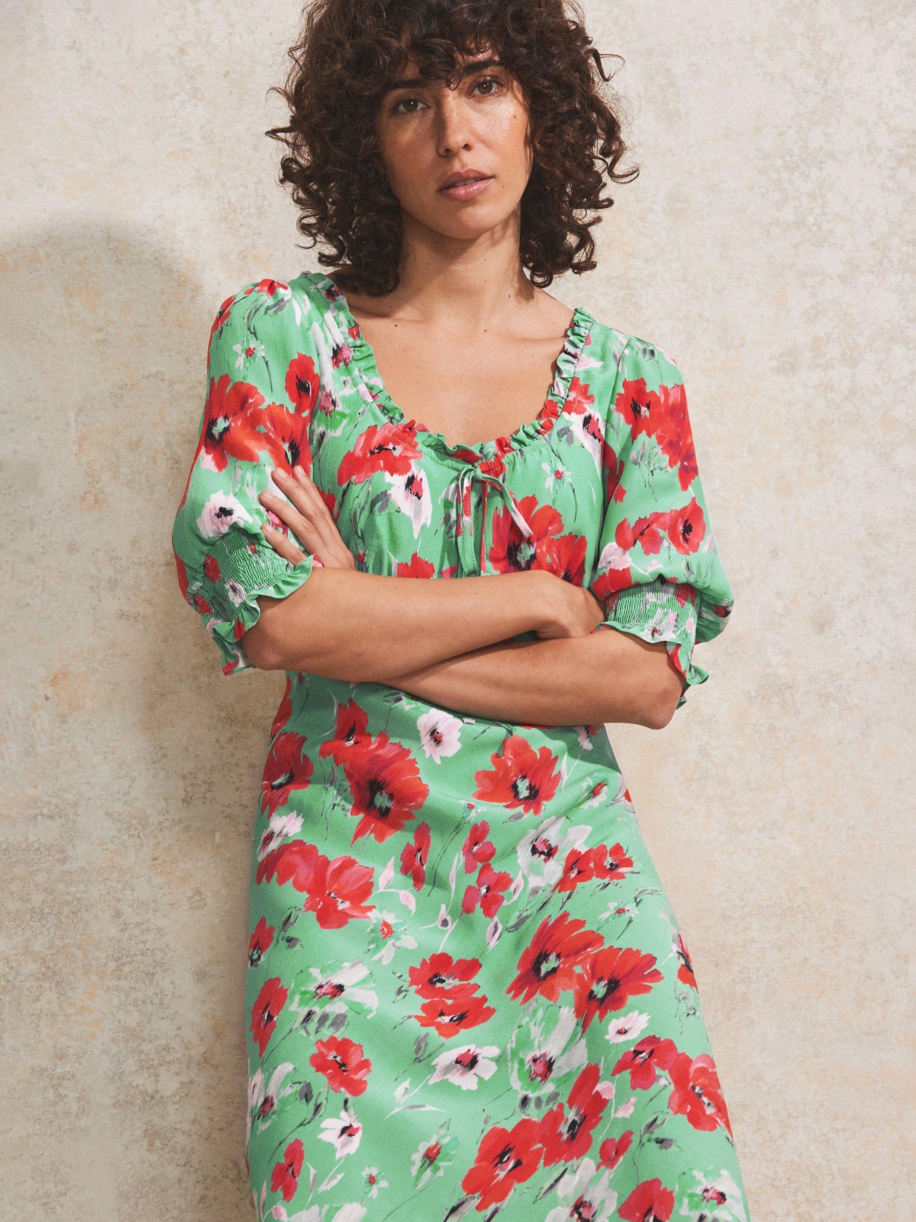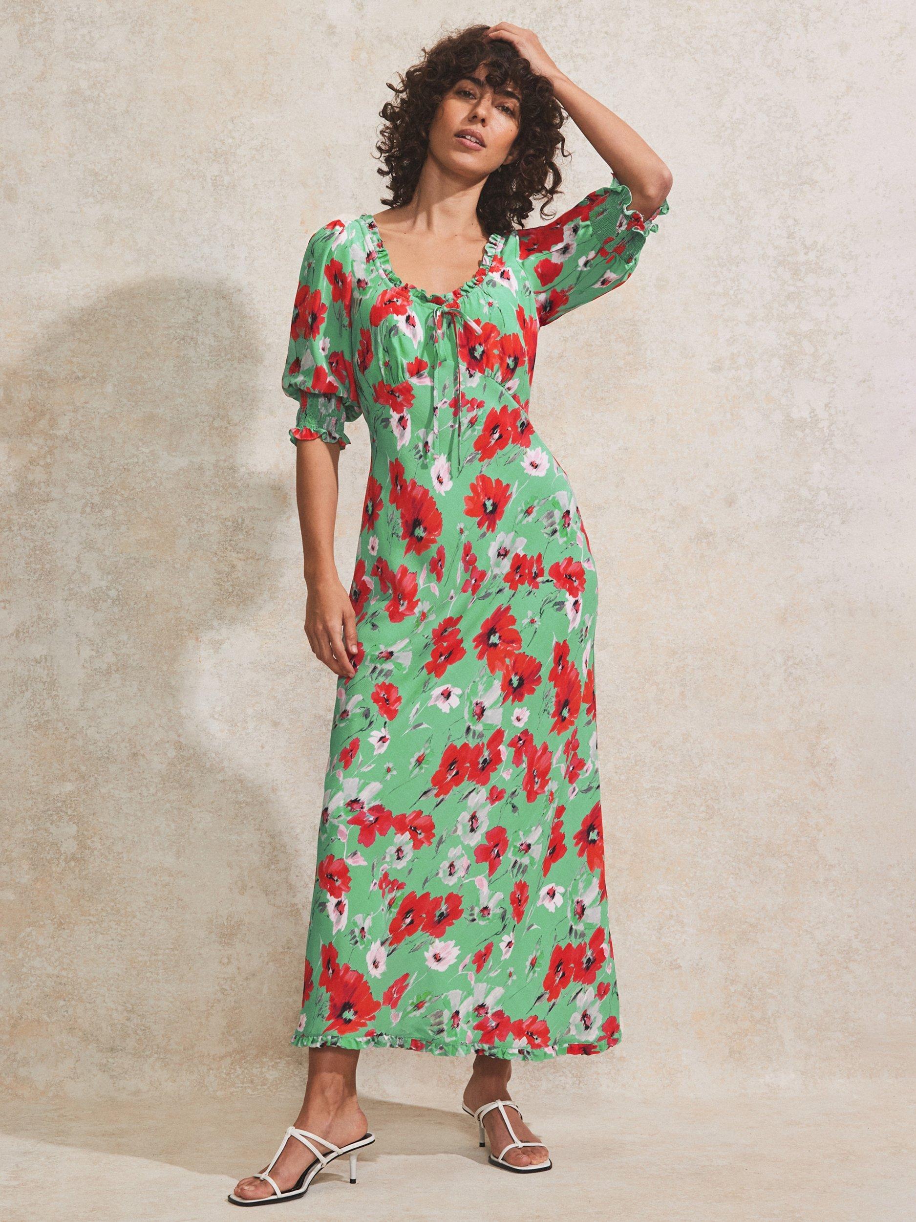 In a flattering fit that accentuates the waist, this tie front floor-length dress from Ro&Zo is dreamt up from whisper-weight viscose. Framed with a scoop neckline and elbow length sleeves, this style charms with ease thanks to the poppy print.