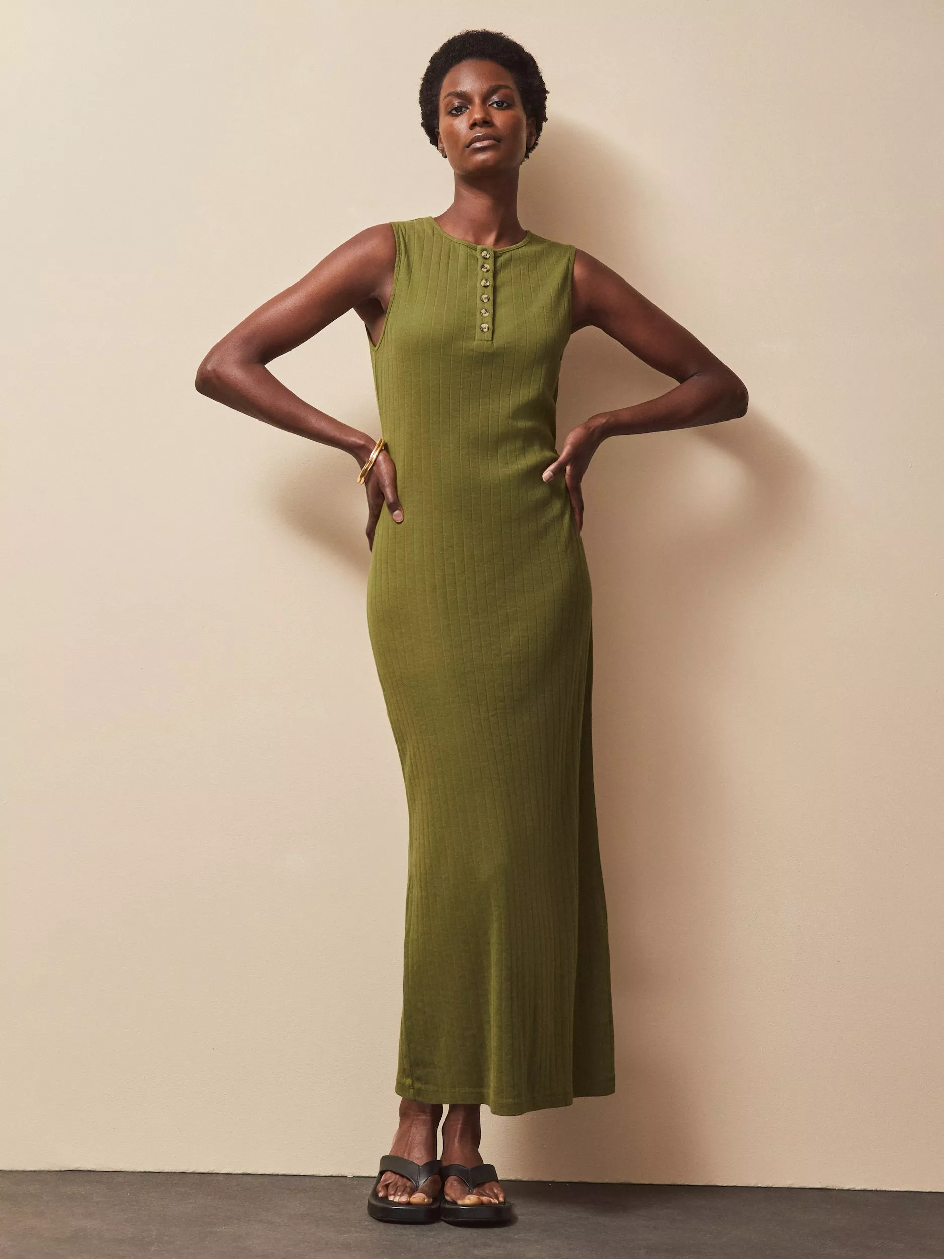 A masterclass in simplicity, this ribbed mid-length column dress from Ro&Zo is crafted from a breathable cotton blend. Defined with a conventional round neckline, this sleeveless style is kept minimal for a truly seasonal collection.