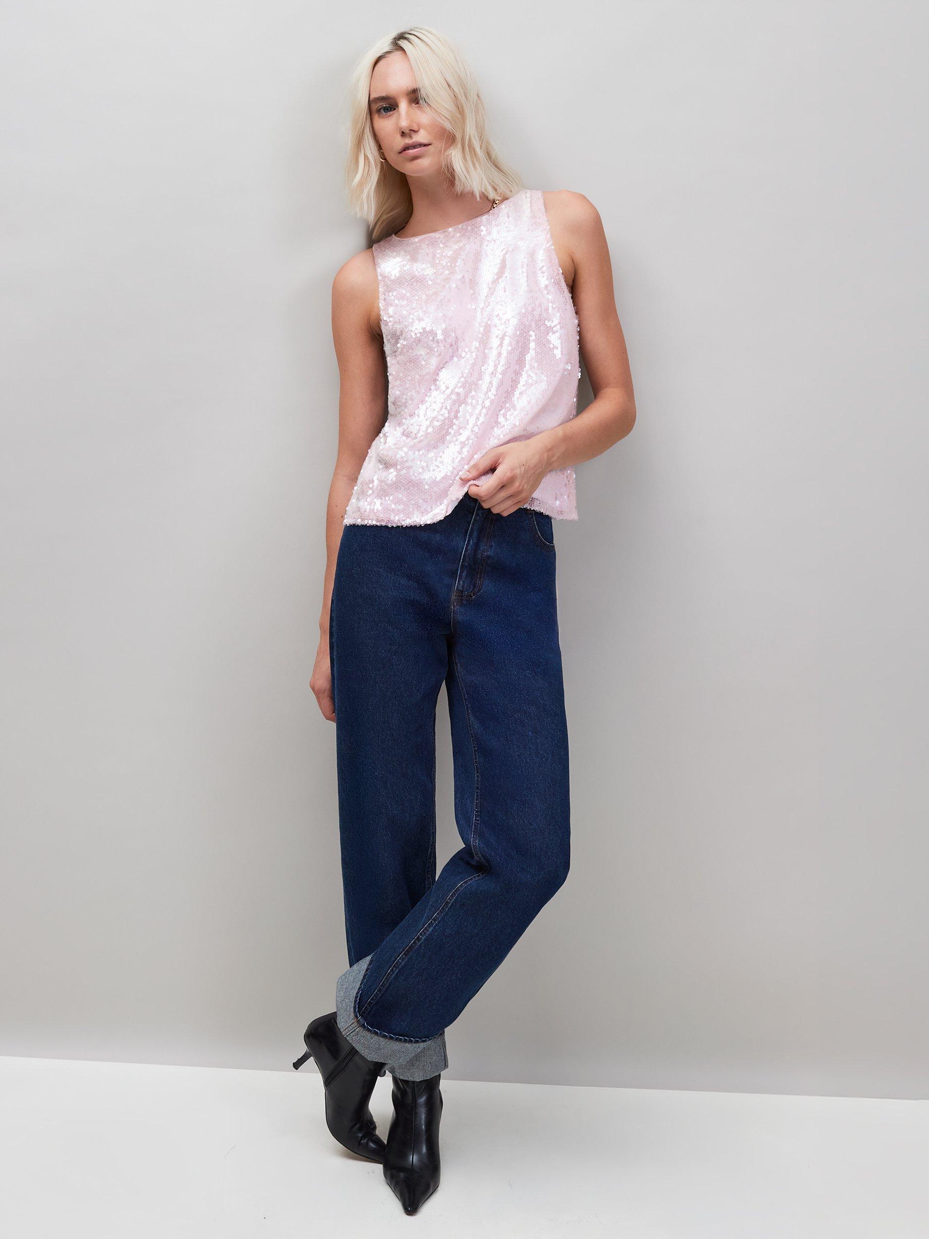 A staple cami by Ro&Zo. Featuring a round neck, its twinkly embellishment sparks interest. The ultimate party-ready piece.