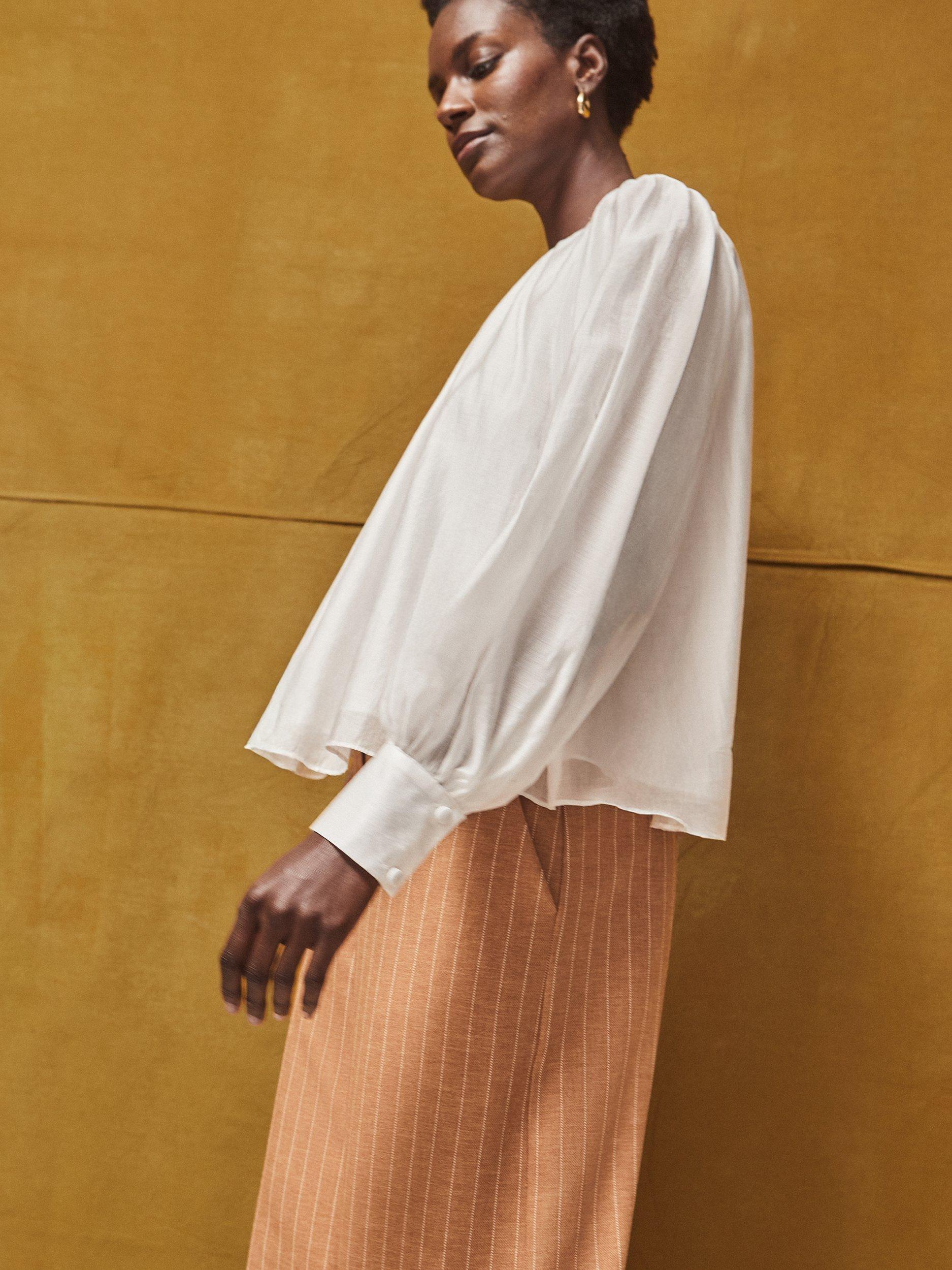 Lightweight and comfy, the Ro&Zo blouse is crafted from soft lyocell for easy, all–day wear. Its timeless round neck and long sleeves make it your go–to for smart layering, from busy mornings to relaxed afternoons.