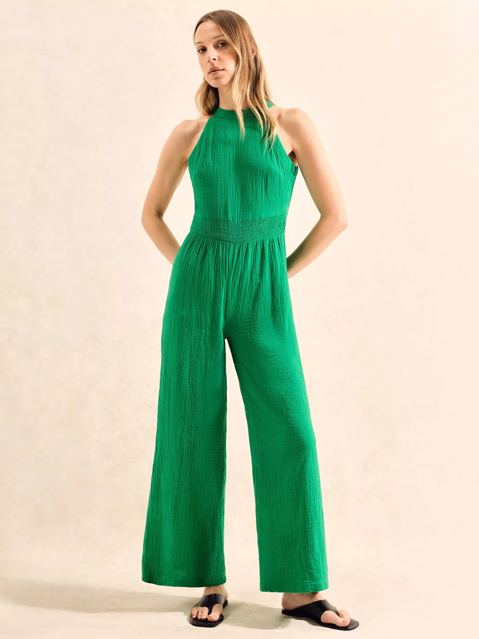 With a halter bodice, this sleeveless jumpsuit by Ro&Zo is crafted from a breezy cotton that'll really come into its own on sunny days. Free from print for truly timeless appeal, this all in one is sure to keep you light and airy this summer.