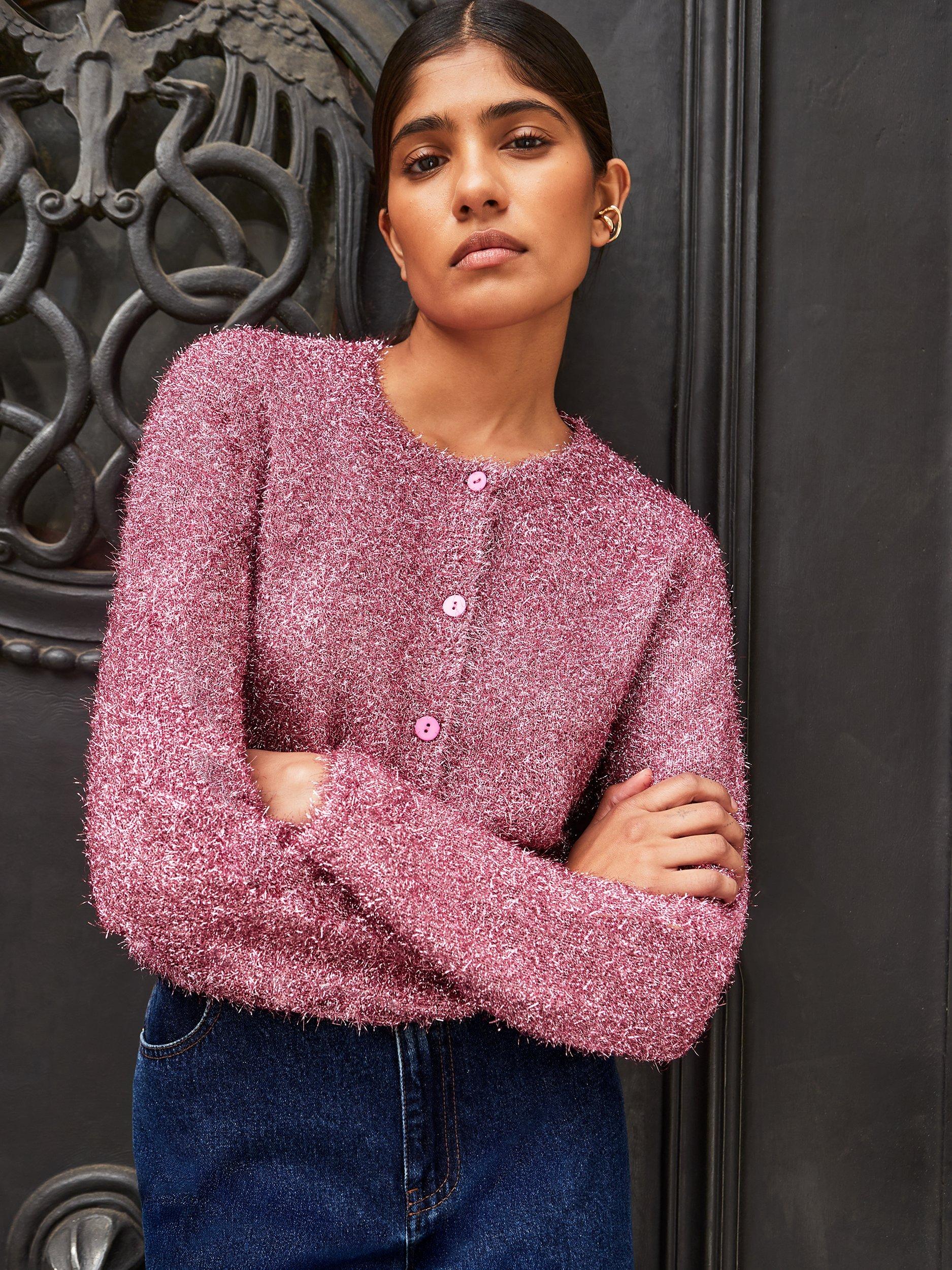 A metallic textured cardigan from Ro&Zo. Its medium weight knit offers comfort for everyday layering, while the button fastening and round neck let you style it your way for any occasion.