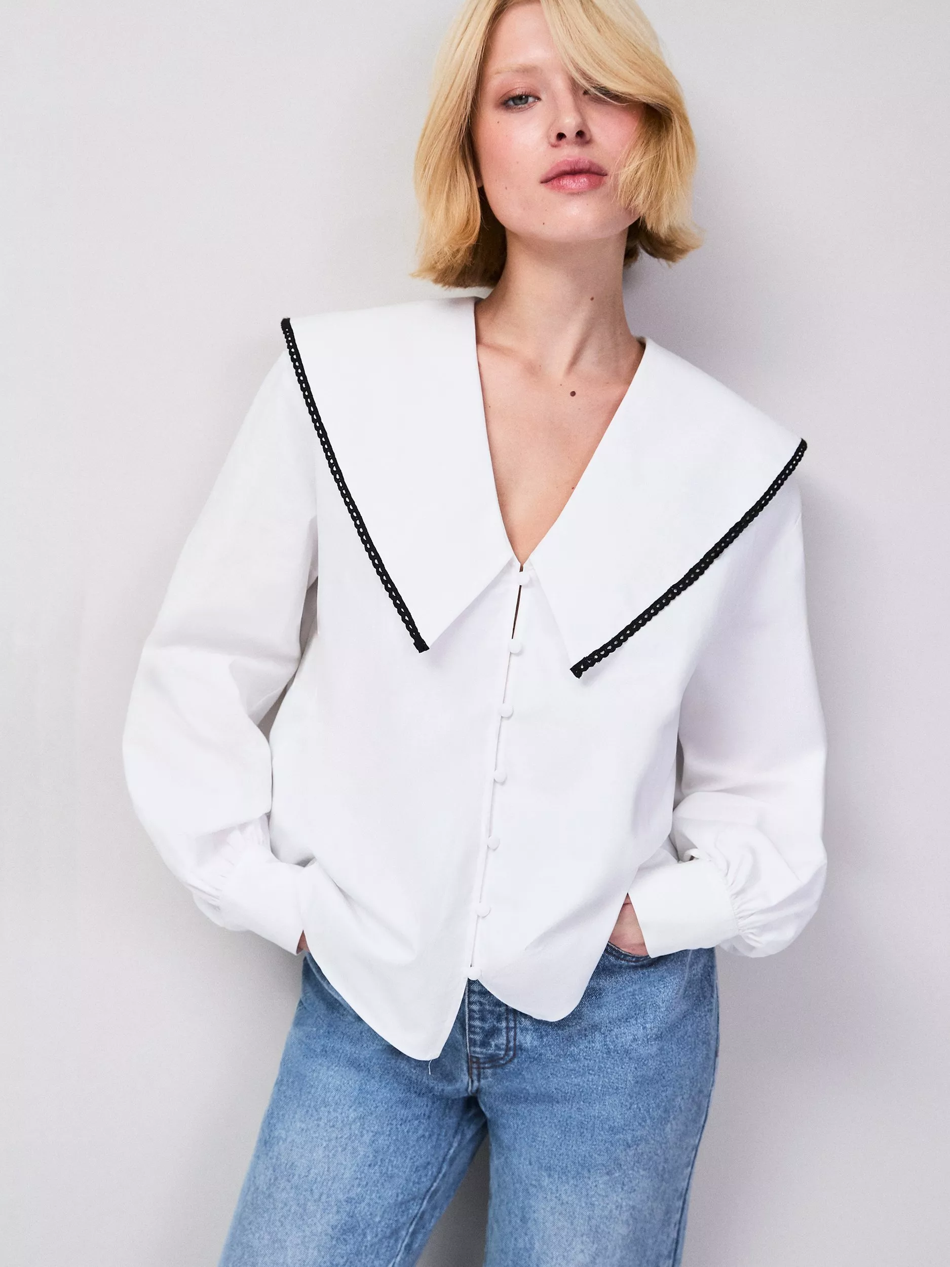 An everyday shirt from Ro&Zo, made from a soft cotton blend. Featuring a V-neck and long sleeves, the plain design means it goes with everything. A wear-everywhere essential.