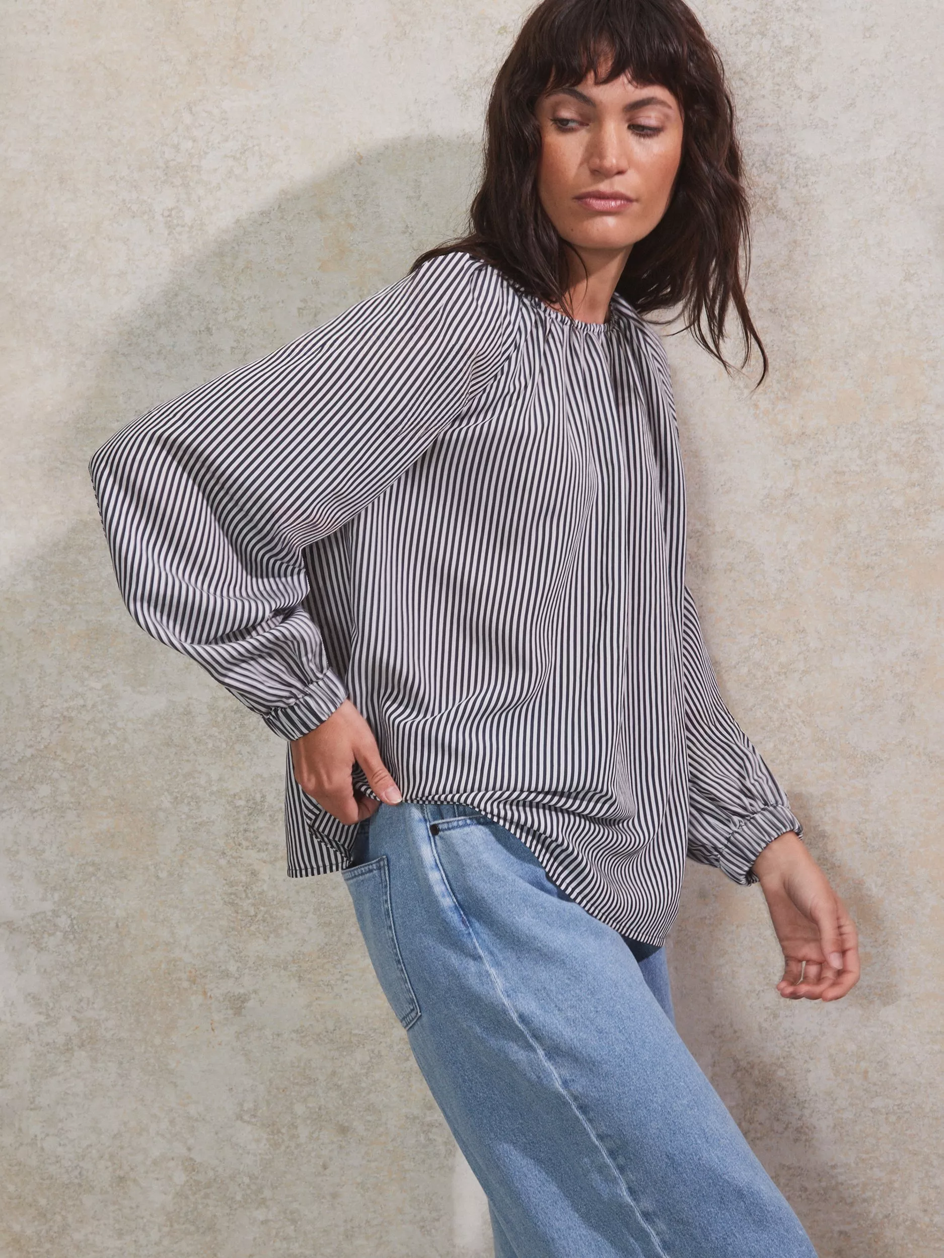 Elevate your autumn/winter wardrobe with the Stripe Gathered Neck Blouse. Pair with tailored trousers for a sophisticated office look or style with your favourite jeans for a relaxed ensemble. The combination of a lightweight breathable fabric and classic stripe offer a refined and stylish look with a touch of casual elegance. The gathered neck detail not only adds visual interest but also provides a flattering, relaxed fit. A keyhole closure at the back adds convenience and a polished finish.
