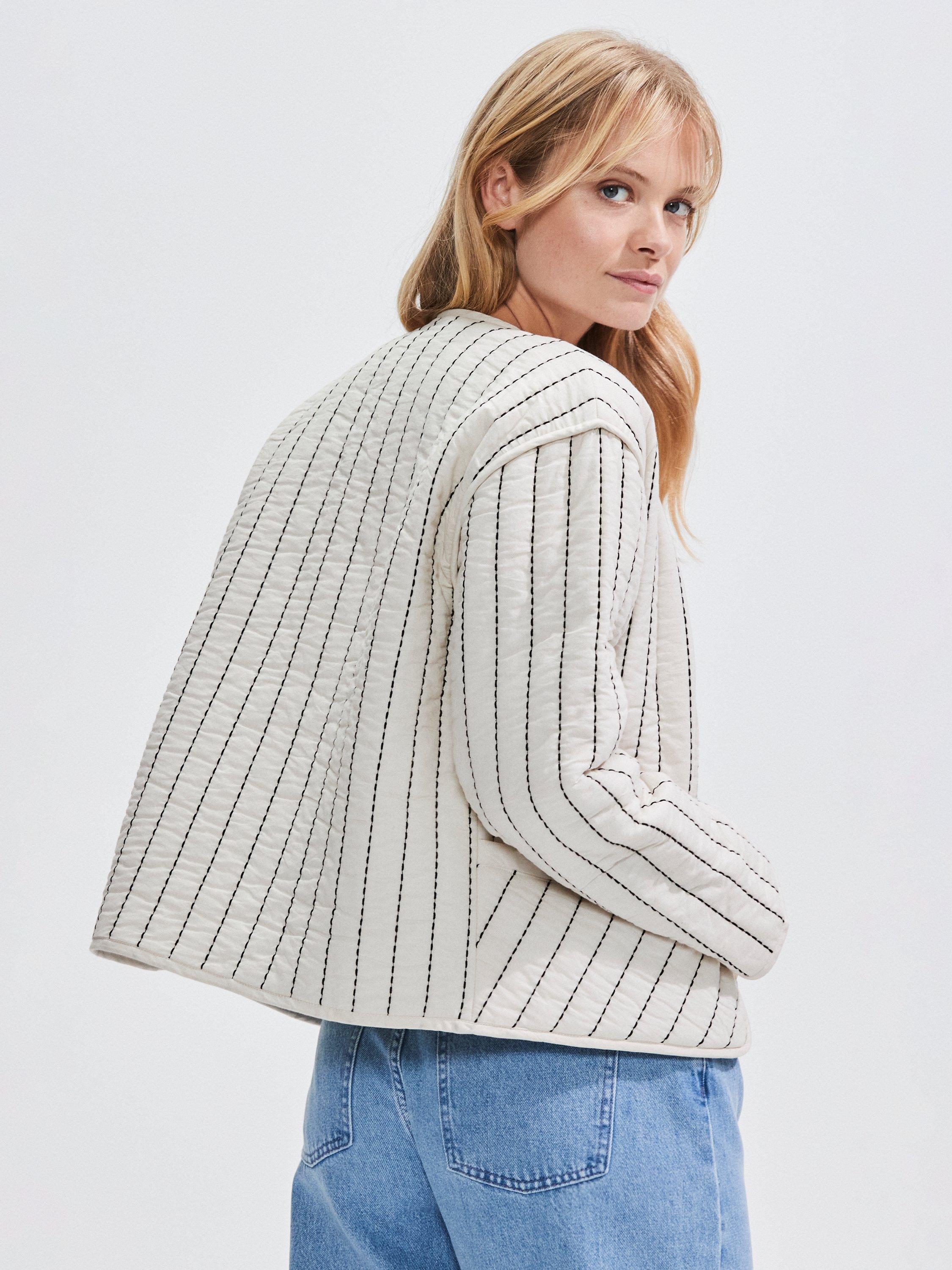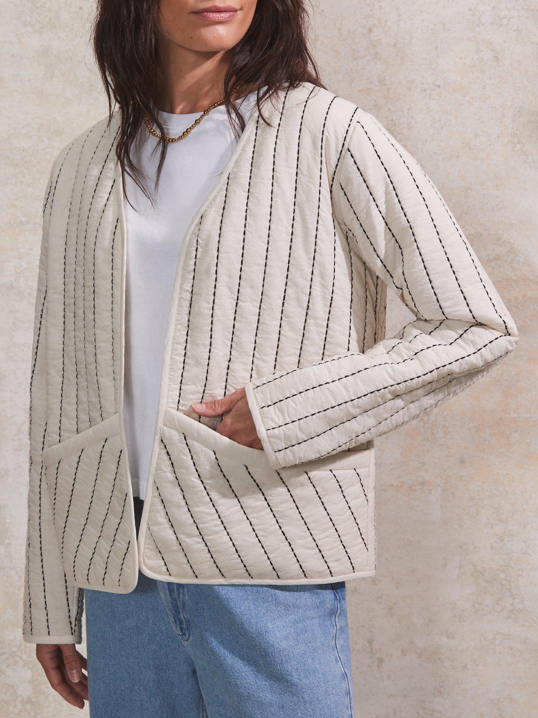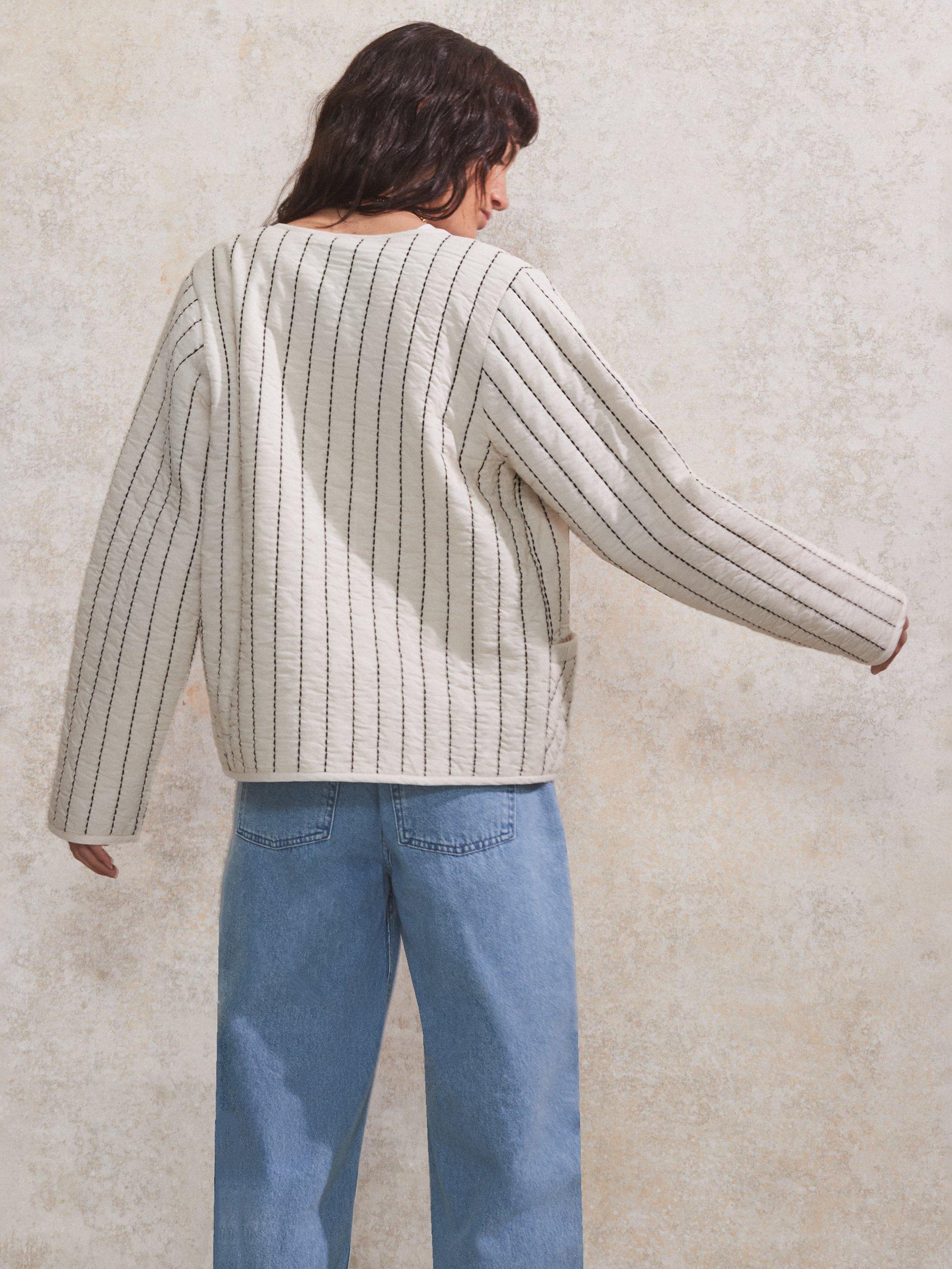 Ideal for transitioning between the season, this padded jacket from Ro&Zo is crafted from a cotton blend with a striped finish.