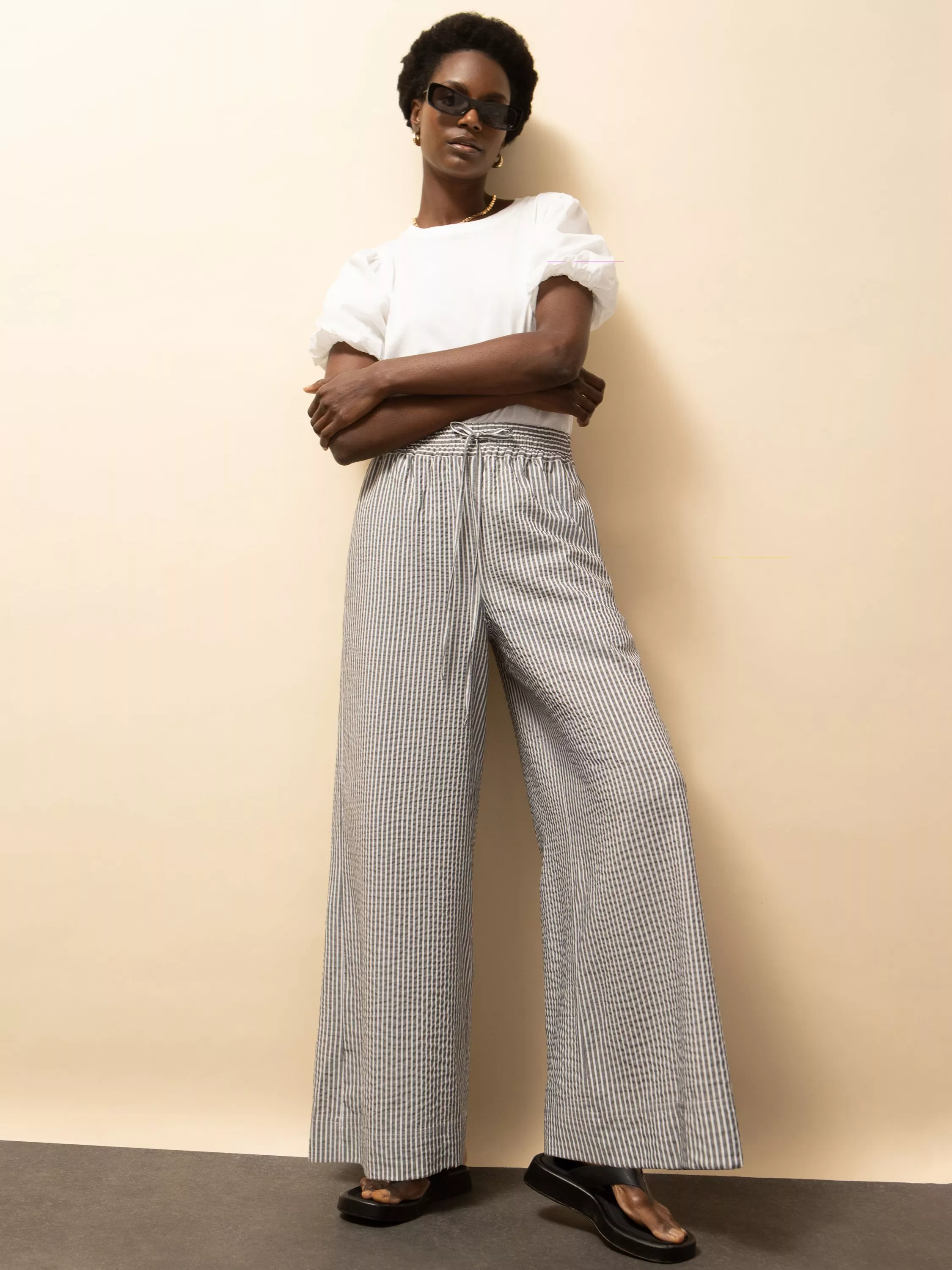 Loose, comfortable material in a striped pattern for easy outfit combinations.