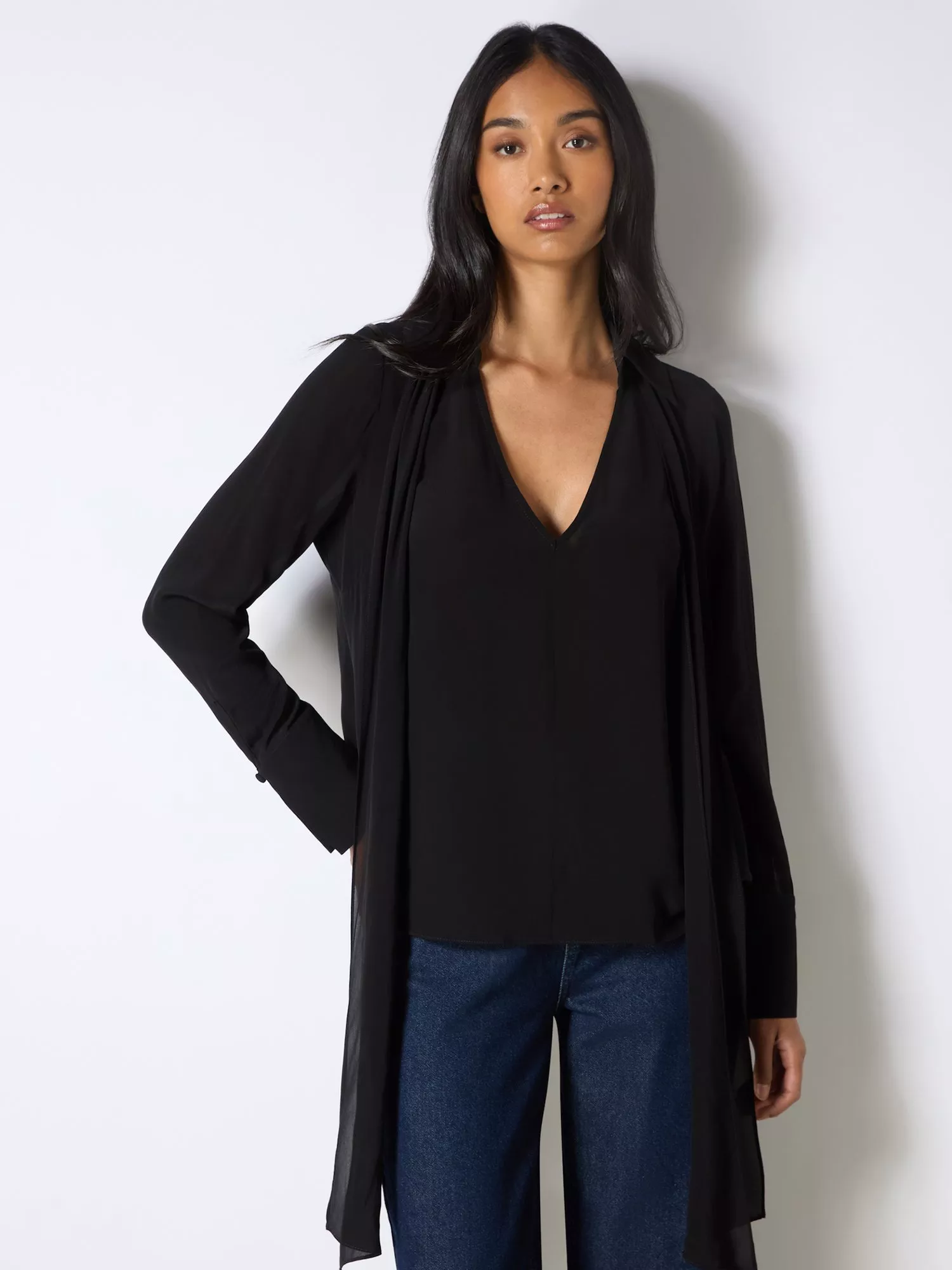 This Tie Neck Blouse is an elegant and versatile staple piece, made from a lightweight, viscose chiffon fabric, this blouse has a relaxed fit, ideal for both office wear and evening outings. This blouse pairs beautifully with tailored pants, pencil skirts, or even jeans, offering endless styling options. The tie neck detail adds a touch of femininity and refinement. The tie can be styled in various ways, such as a bow, knot, or left loosely draped for a more casual look.
