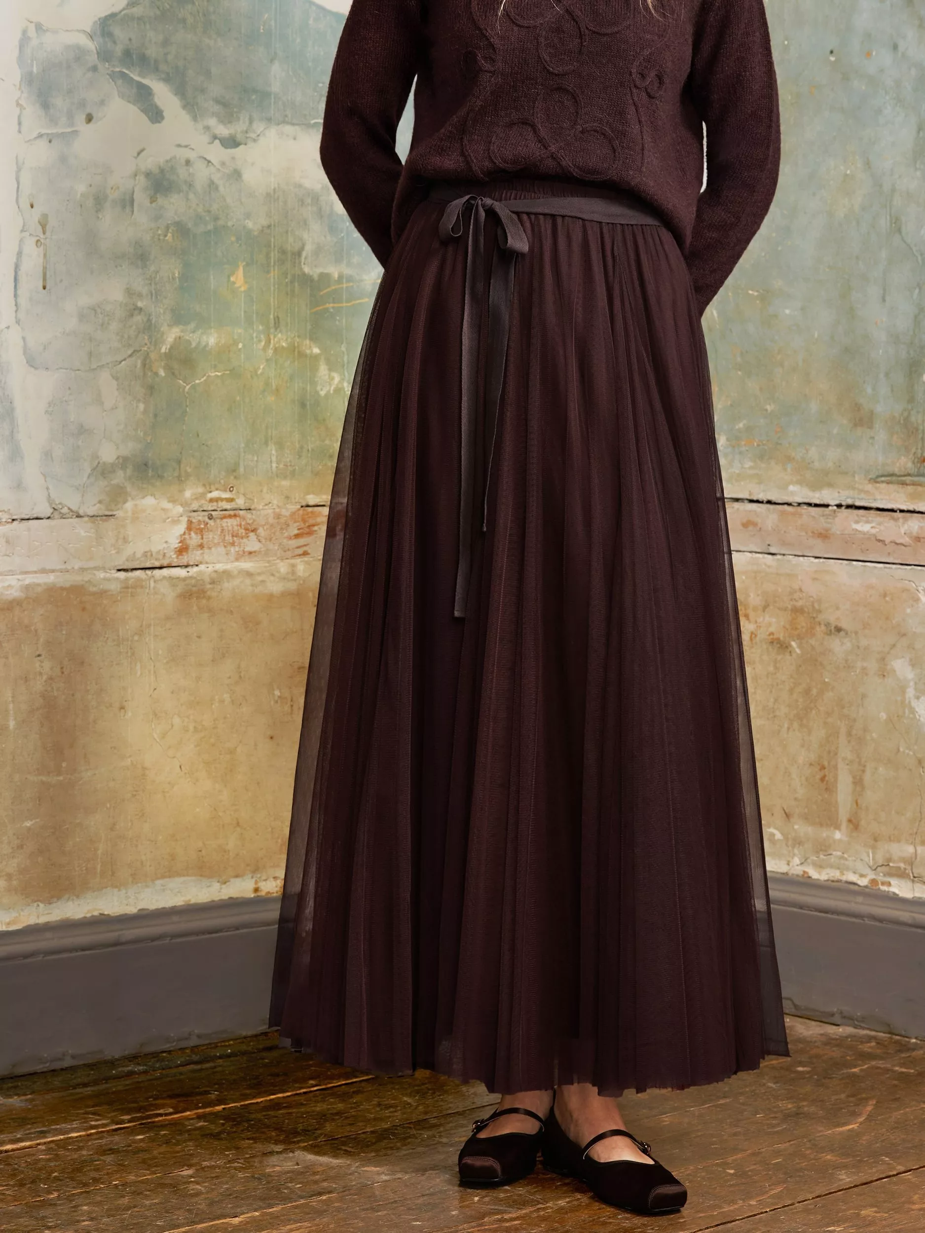 A godet detailed maxi skirt by Ro&Zo. Waist-whittling fit with a soft flare, it's finished in soft tulle and fastens smoothly with a zip.