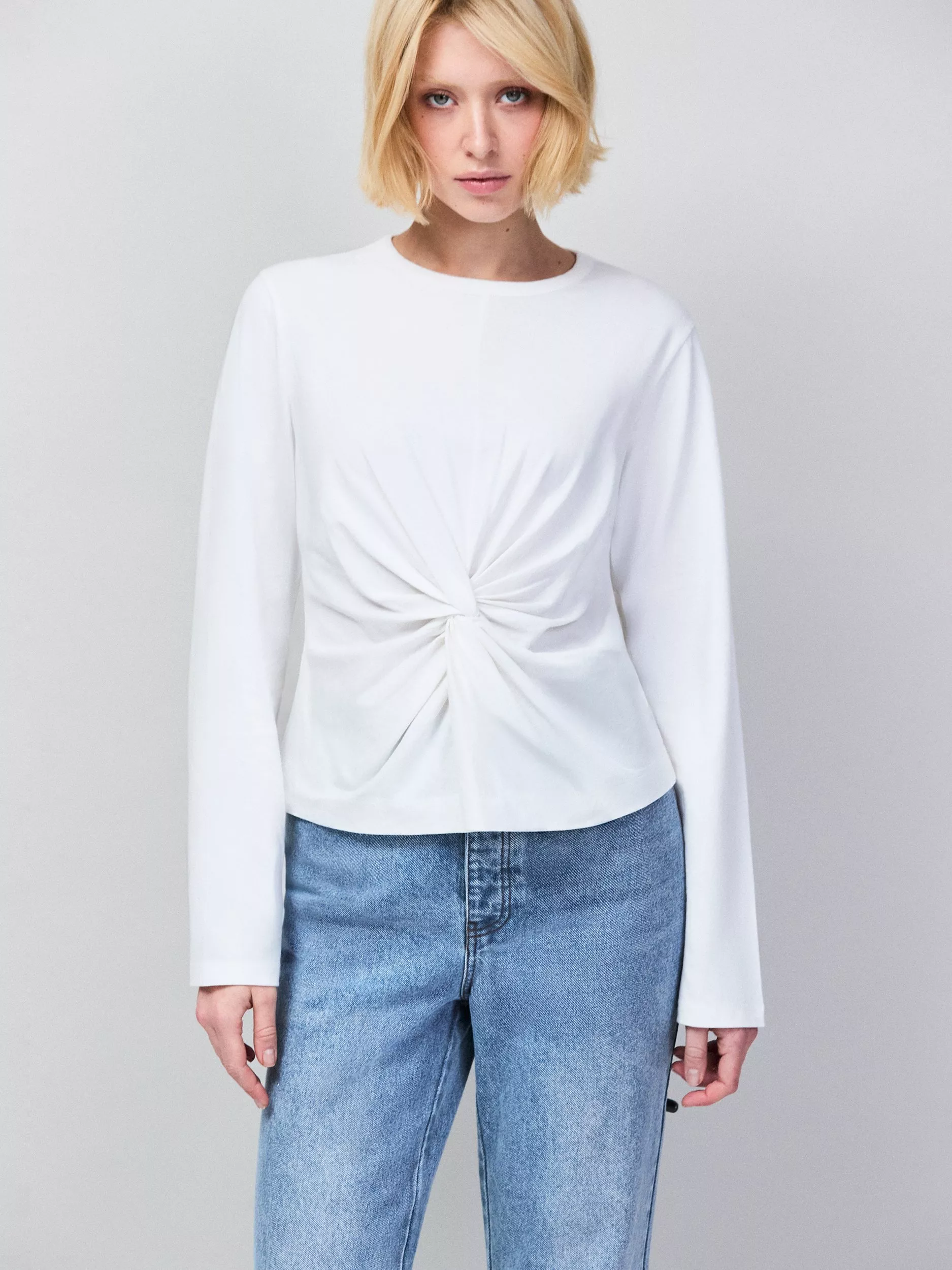 Ro&ZoTwist Front Long Sleeve Top, White