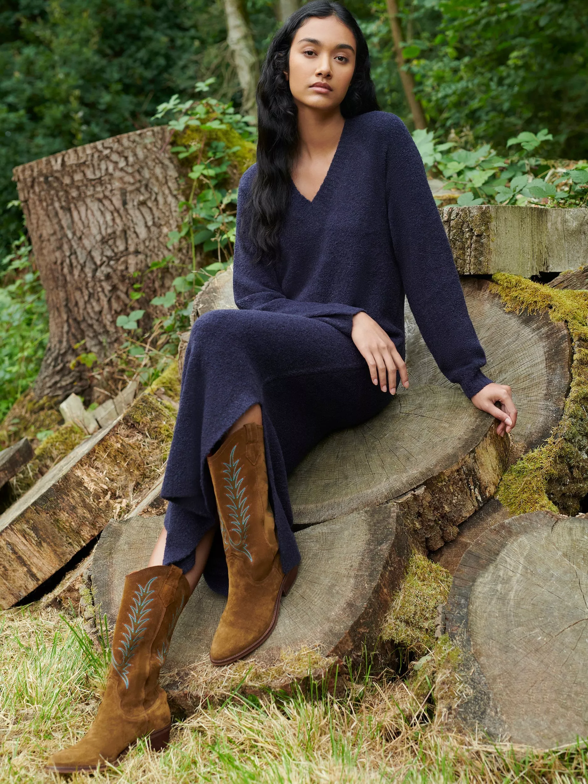 In a soft silhouette, this v-neck textured knit dress from Ro&Zo features a wool-content for a cosy and stylish look. It has a relaxed fit with ribbed V-neckline and cuff details, adding subtle sophistication. A side split enhances its modern appeal and ease of movement.