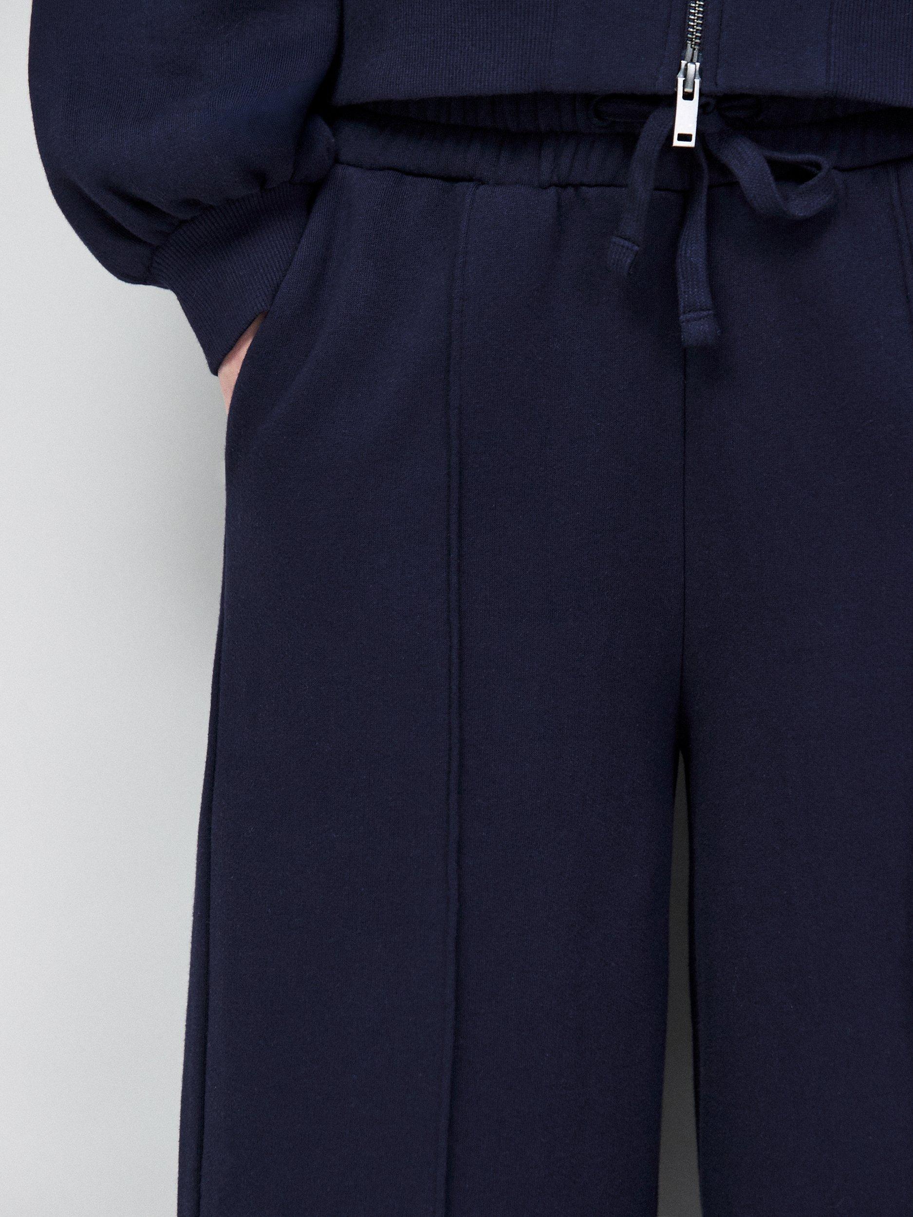 A pair of wide-leg joggers from Ro&Zo with a cotton blended base. They feature a mid rise with a drawstring at the waist and a longer length.