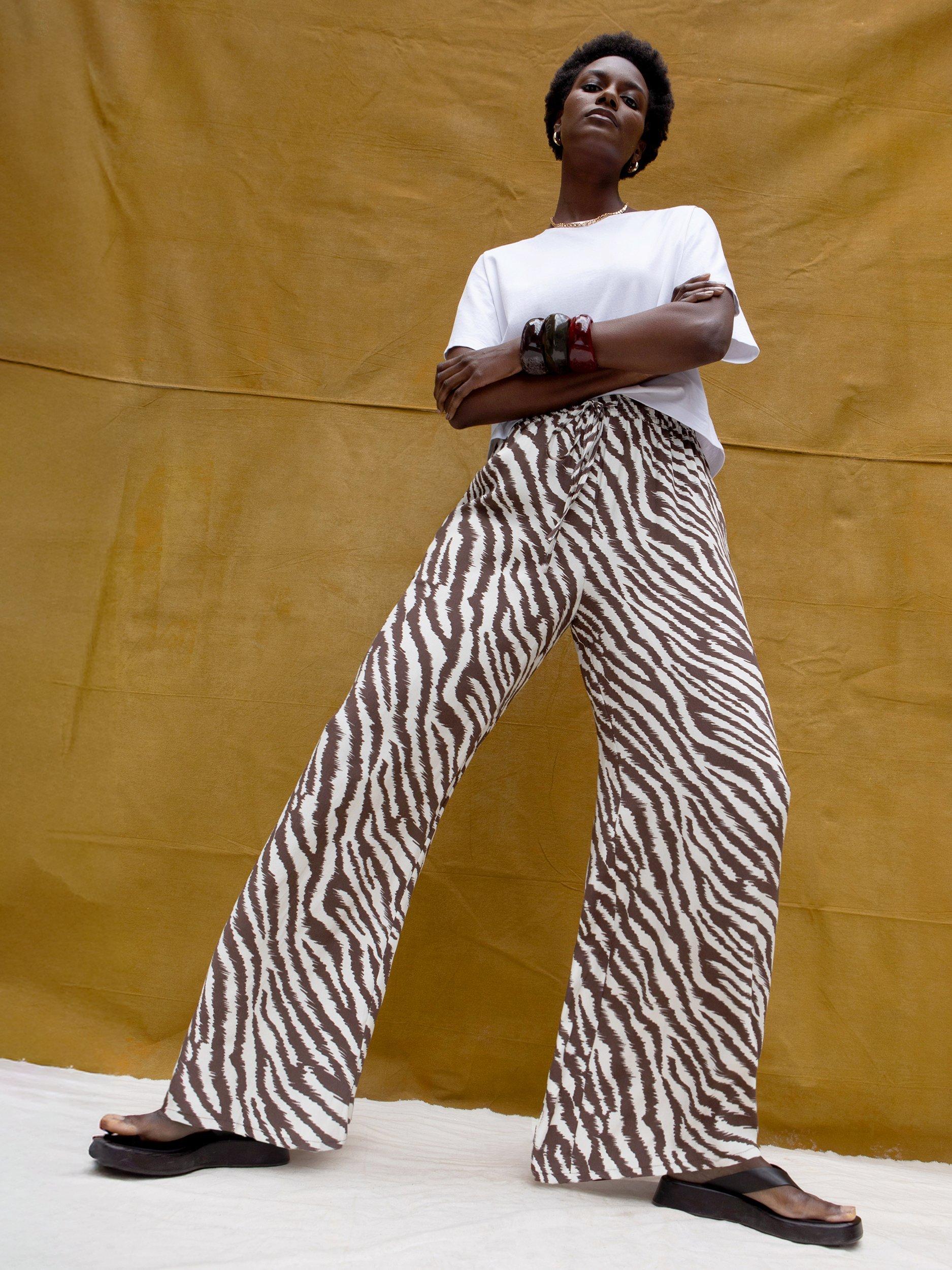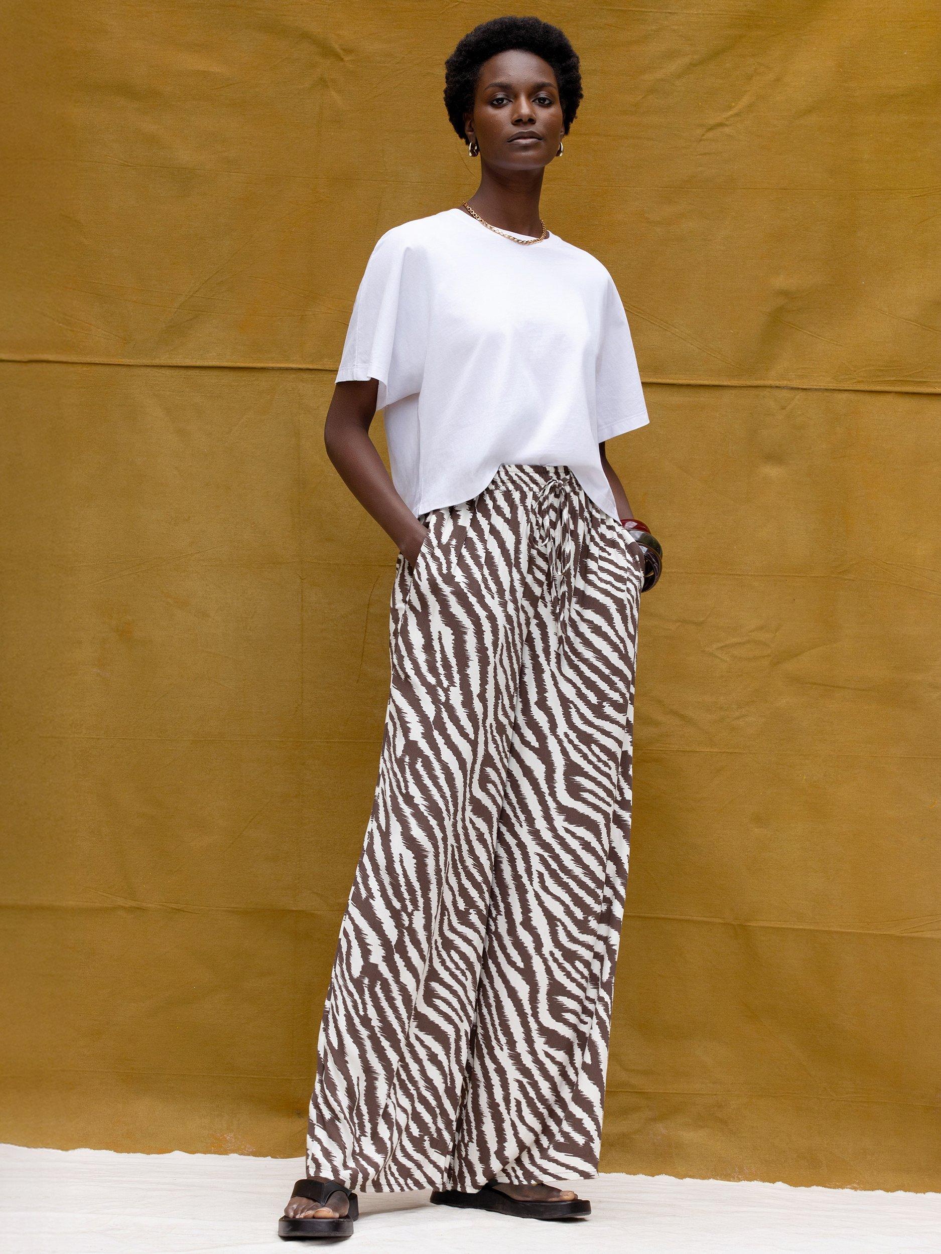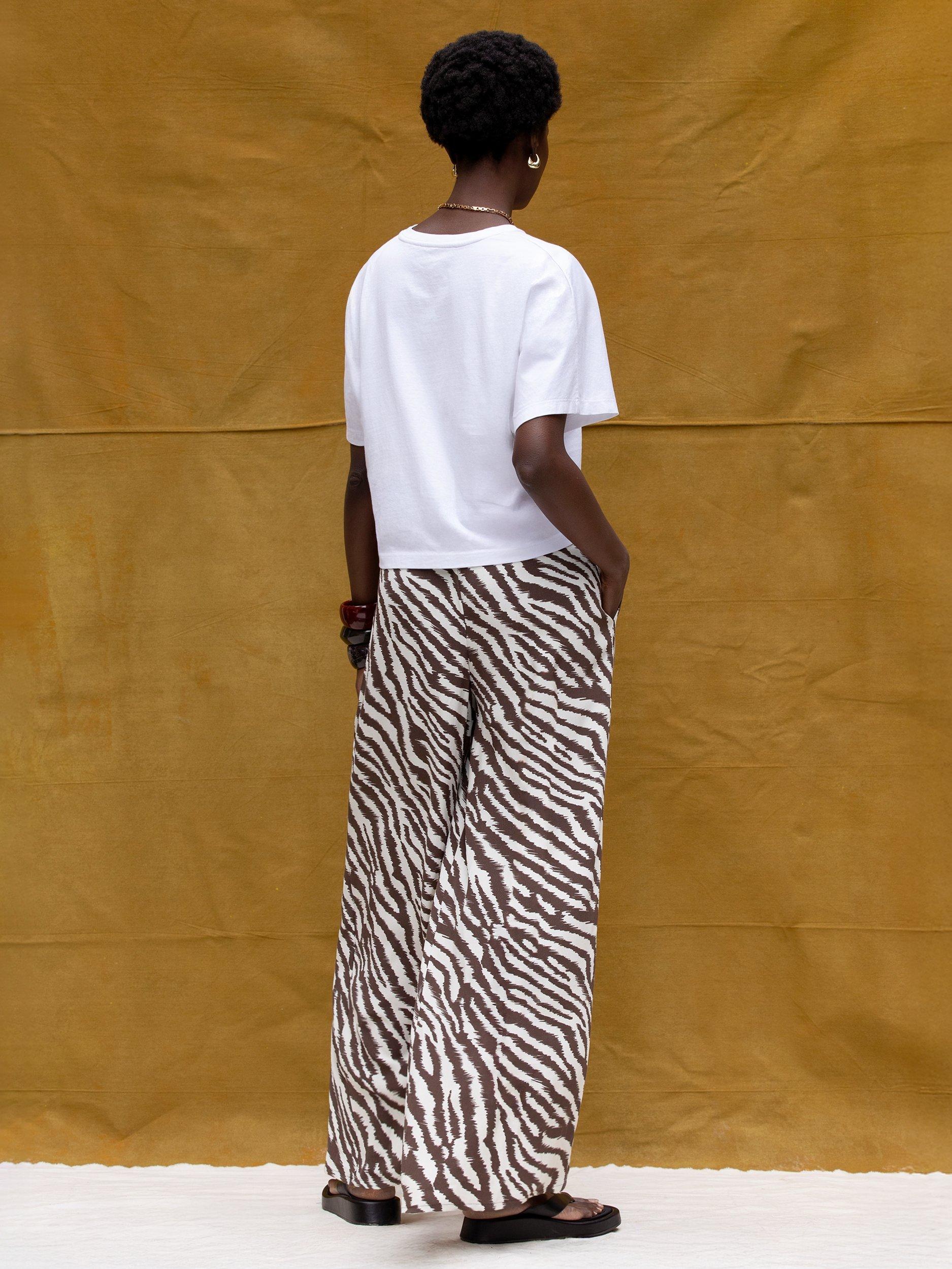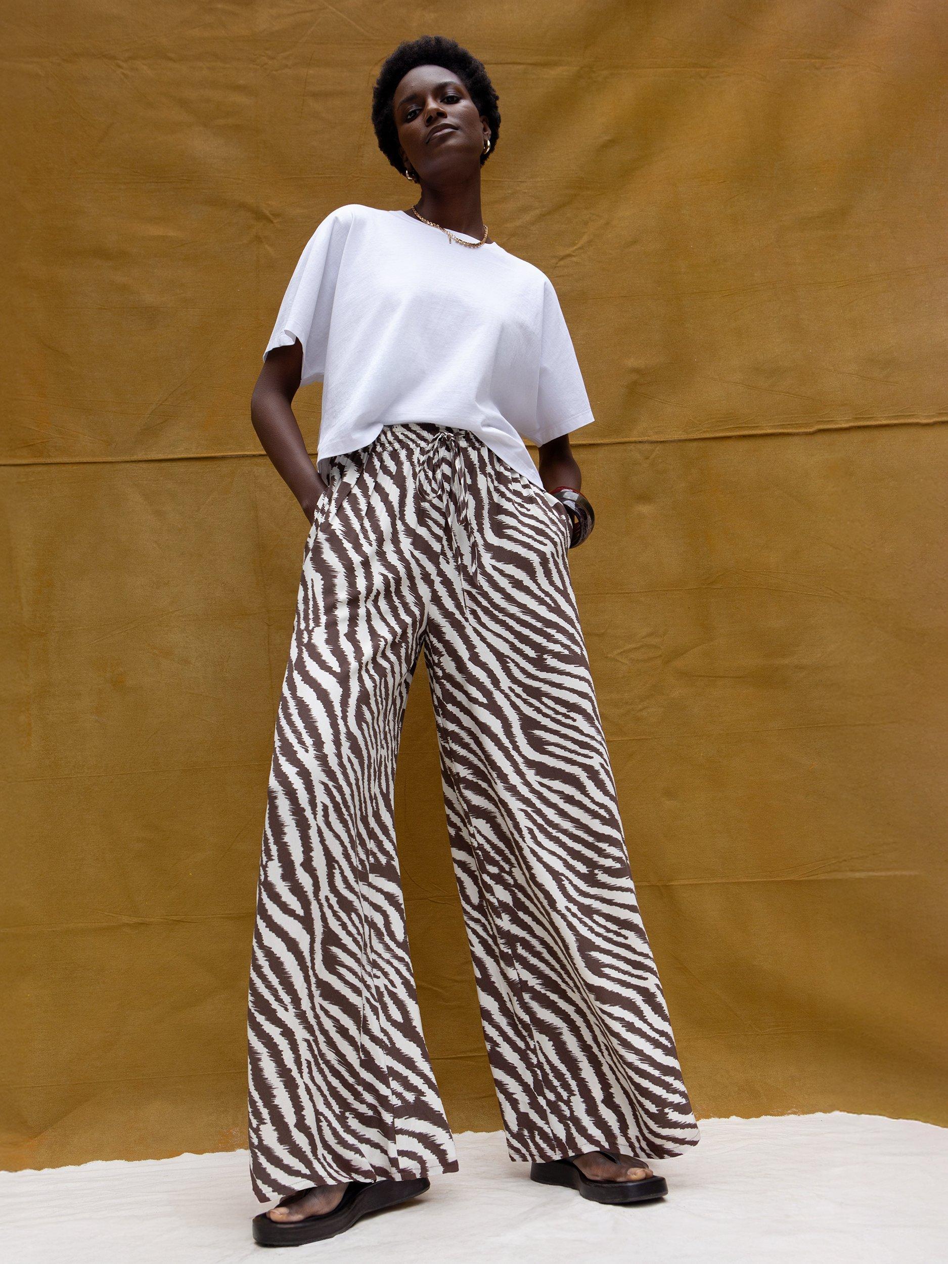 A pair of perfectly balanced wide-leg trousers by Ro&Zo. Sitting naturally on the hips, they feature an all-over zebra print.