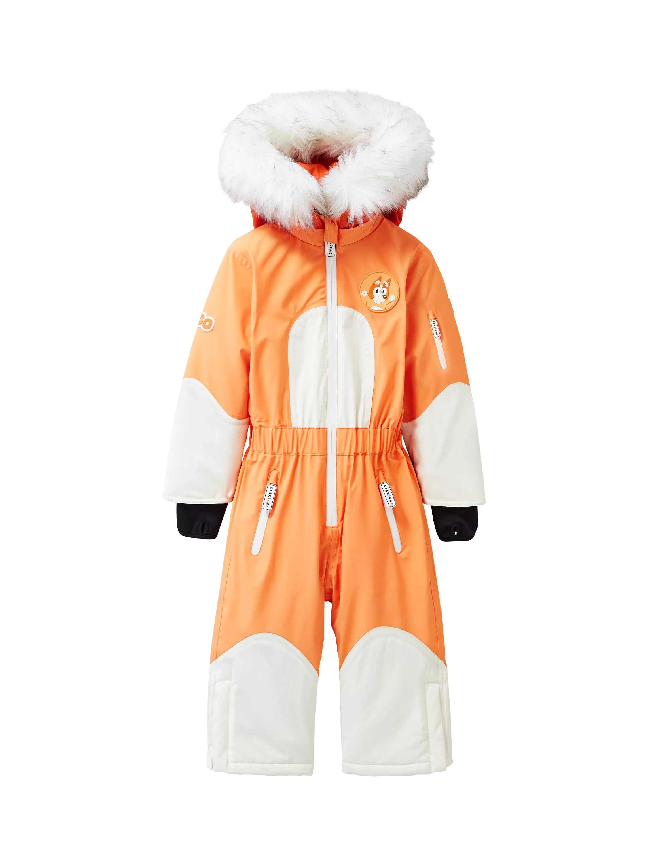 Roarsome x Bluey - super limited Bingo edition! Designed for snow - totally waterproof, tested to temperatures of -30°C, with taped seams, aqua seal zips and removable hood and faux fur.
