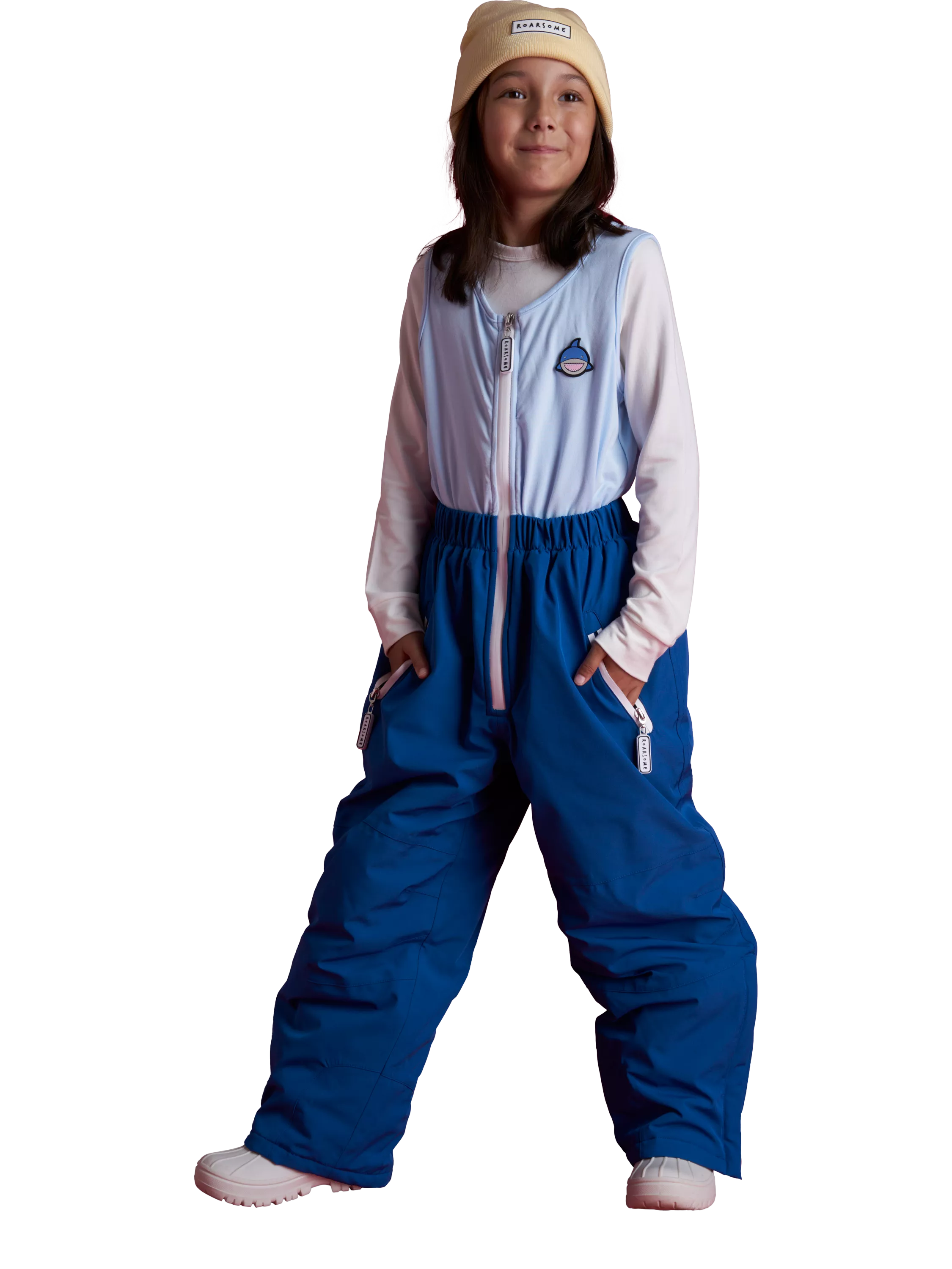 Salopettes - designed for snow - totally waterproof, tested to temperatures of -30°C, with taped seams, aqua seal zips, comfy bamboo zip-up vest and elasticated boot covers.