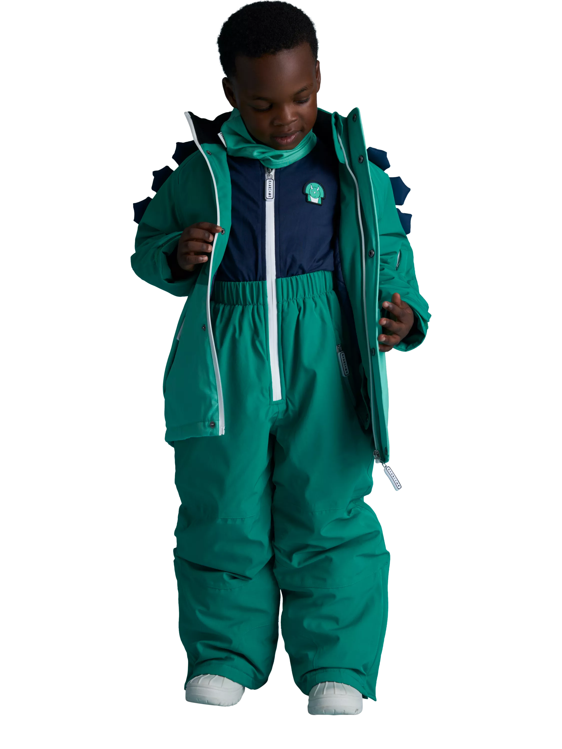 Salopettes - designed for snow - totally waterproof, tested to temperatures of -30°C, with taped seams, aqua seal zips, comfy bamboo zip-up vest and elasticated boot covers.