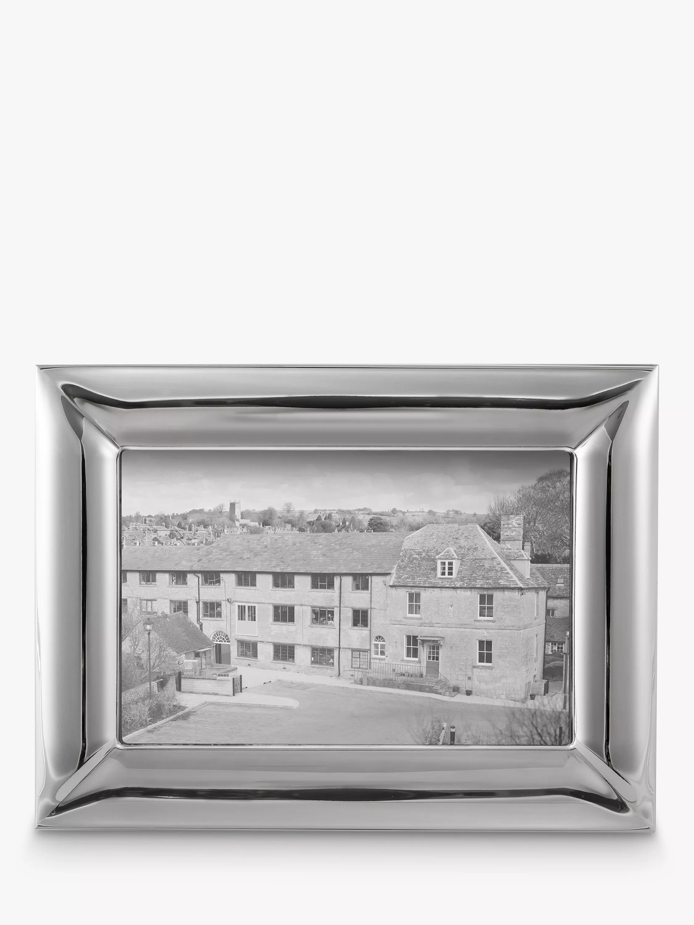 Made from stainless steel, the convex shape of the Robert Welch Barrow frame and polished finish work together to elegantly highlight the photo presented within.
