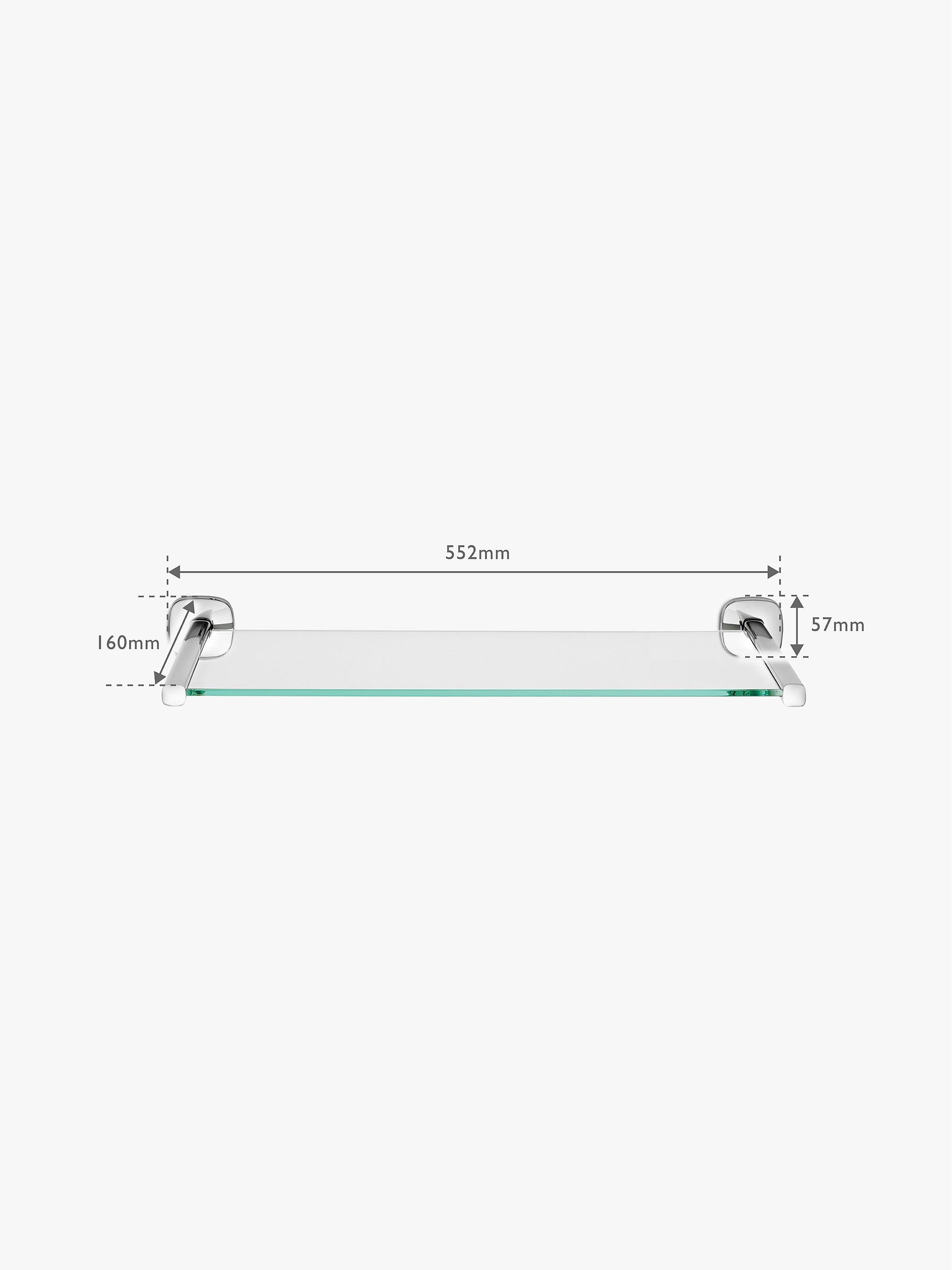 A glass bathroom shelf with a soft, square shape that is the distinctive feature of the whole Burford Bathroom range. The timeless design with simple shapes and clean lines will complement any style of bathroom with its combination of practicality and the usual Robert Welch attention to detail.