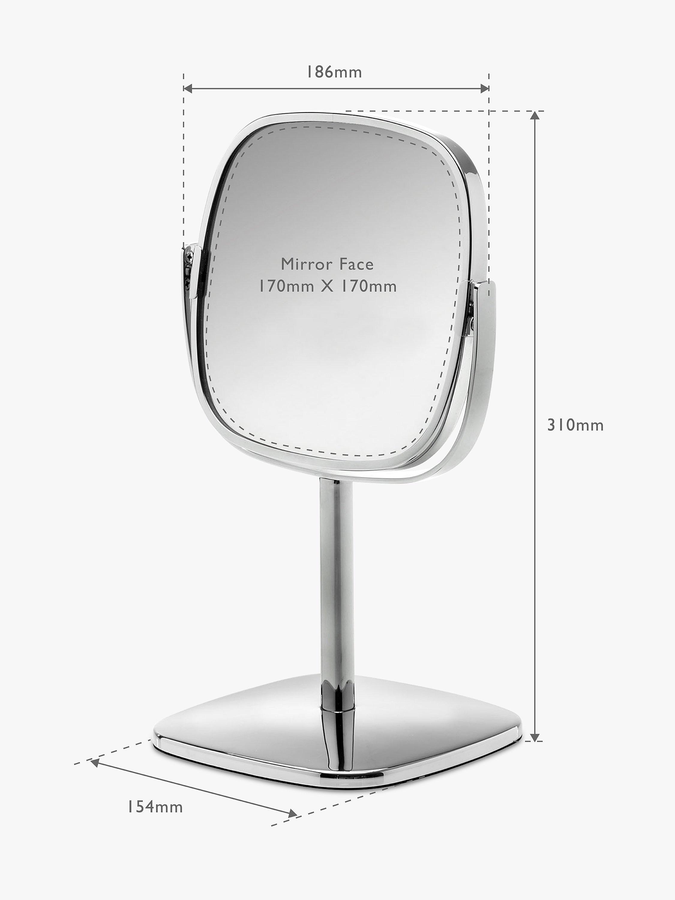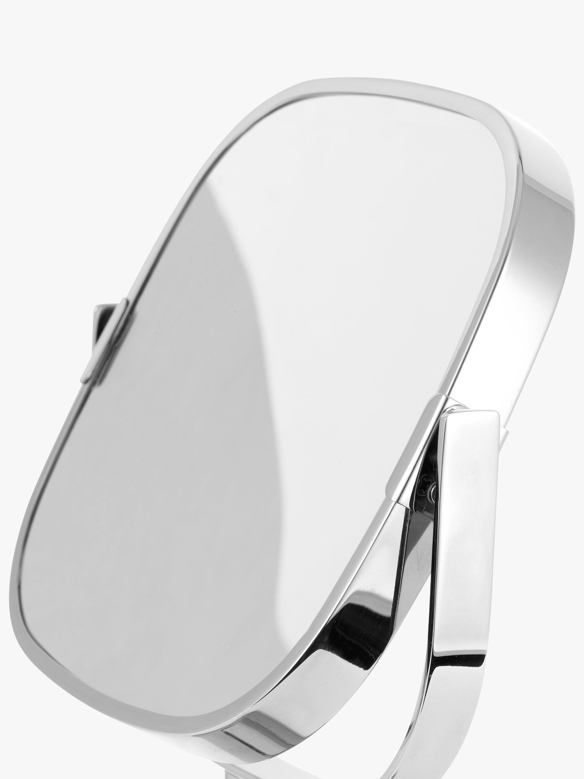 The mirror has a weighted base for stability; made from 18/10 stainless steel.