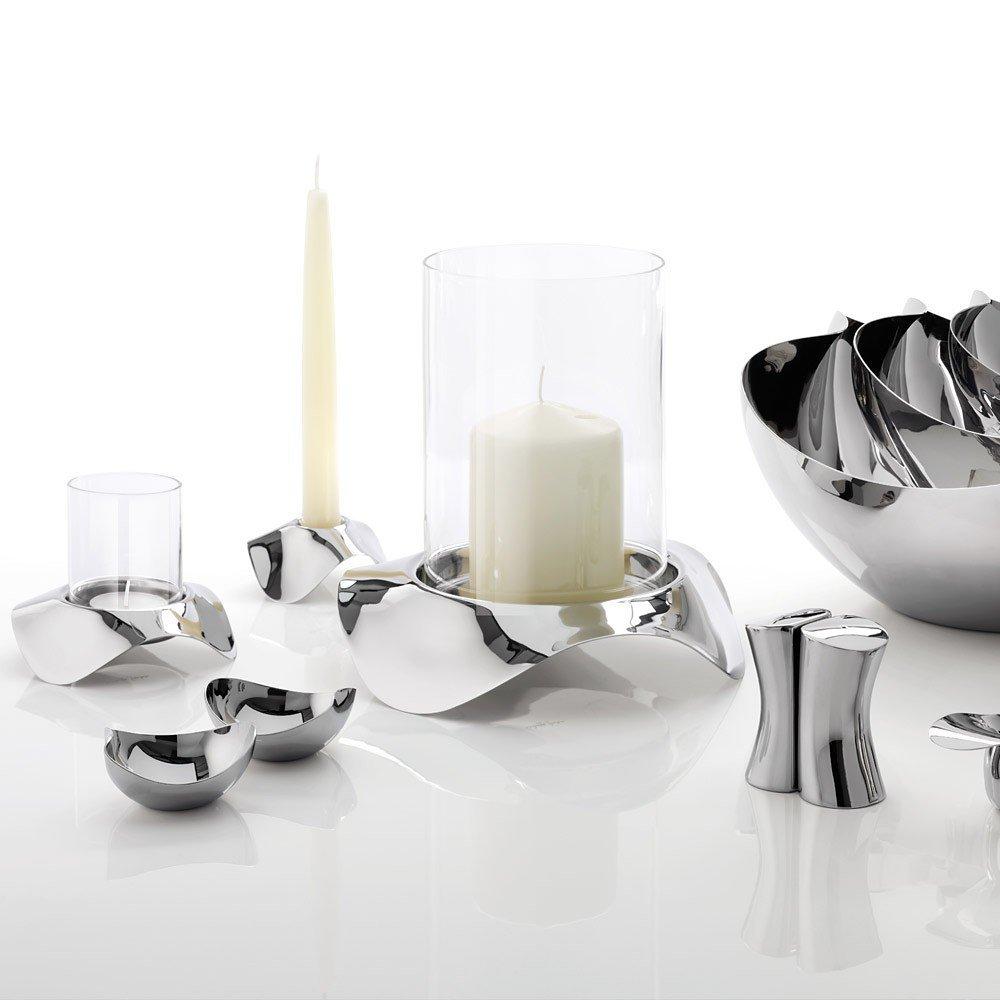 The Drift candle holder has a flowing, wave-like base which will look beautiful on any surface. The reflection of candlelight on the stainless steel casts a magical light wherever it is used - indoors or outdoors.