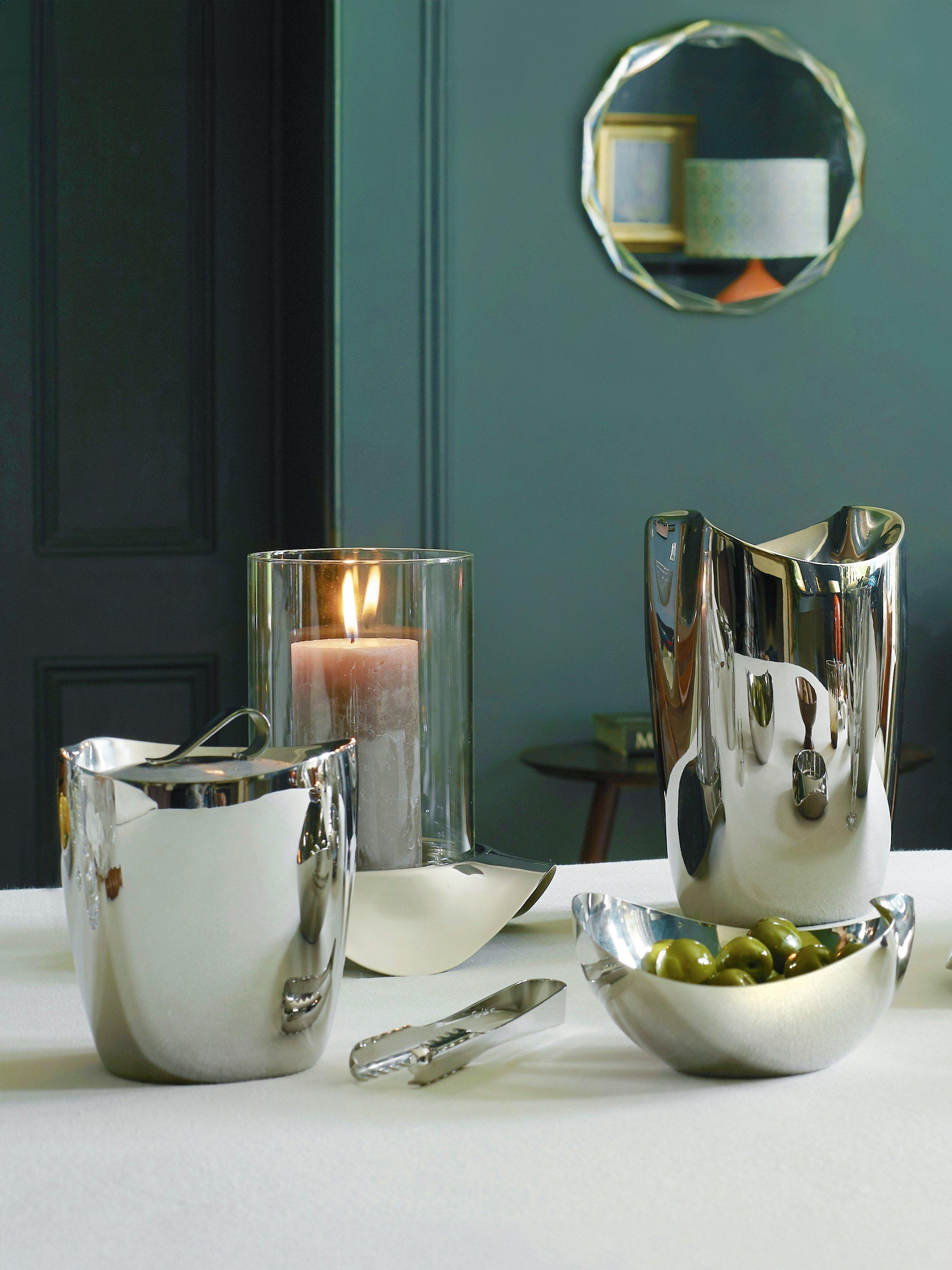 Classically proportioned, the Drift collection is designed to conjure a feeling of fluid movement with organic shapes and reflective, mirror-polished surfaces. Dishwasher-safe for easy cleaning.