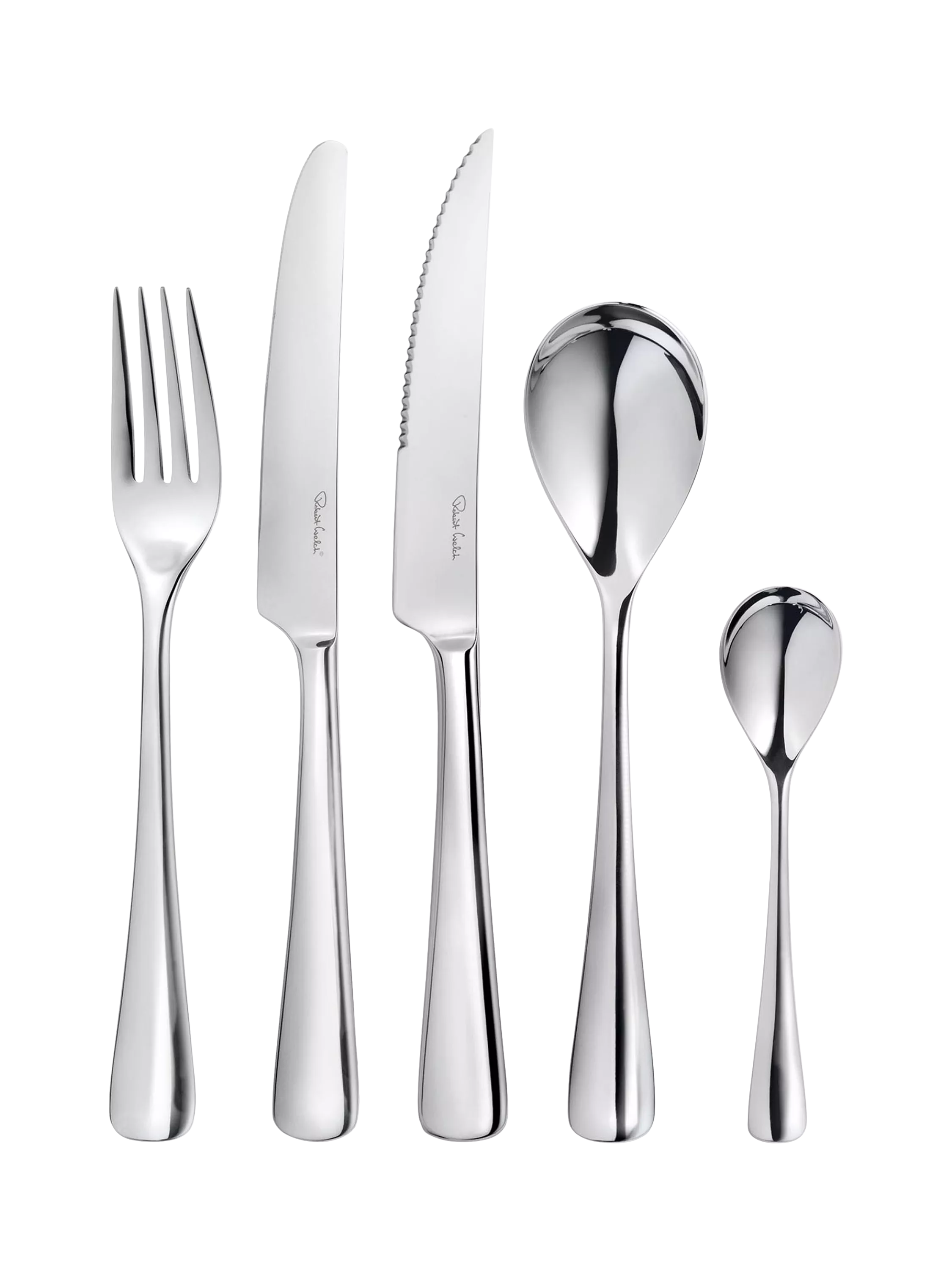 Inspired by the contours of the nearby hills in the Worcestershire town he grew up in, this elegant and timeless 56-piece cutlery set is designed by Robert Welch with pieces that flare softly to a curved base. The handles have a substantial feel and sit comfortably in the hand.