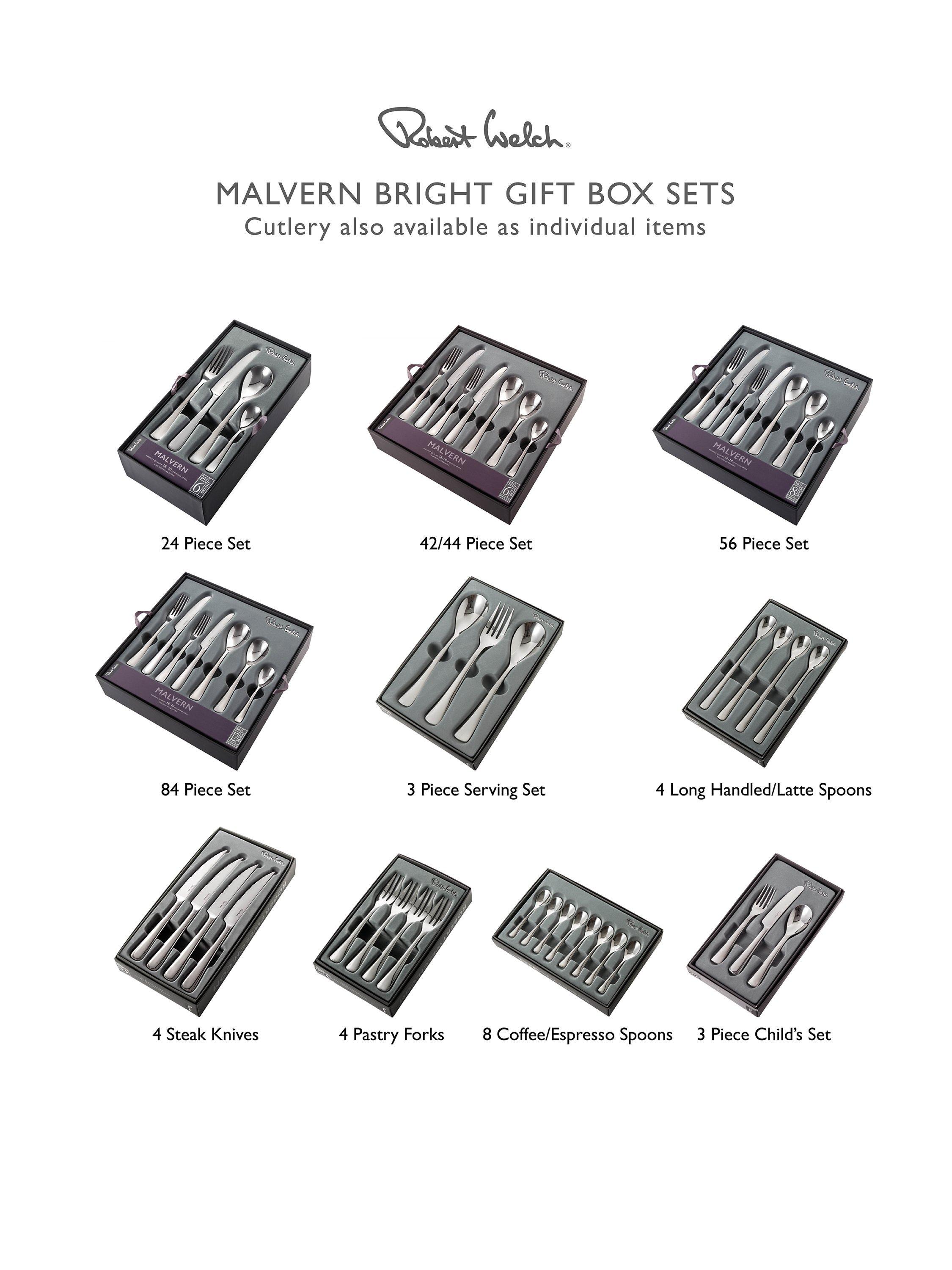 Malvern is available in a bright finish, is fully guaranteed and dishwasher safe. Spoons and forks are made from the highest quality 18/10 stainless steel; knives are forged from specially hardened stainless steel for a fine cutting edge.