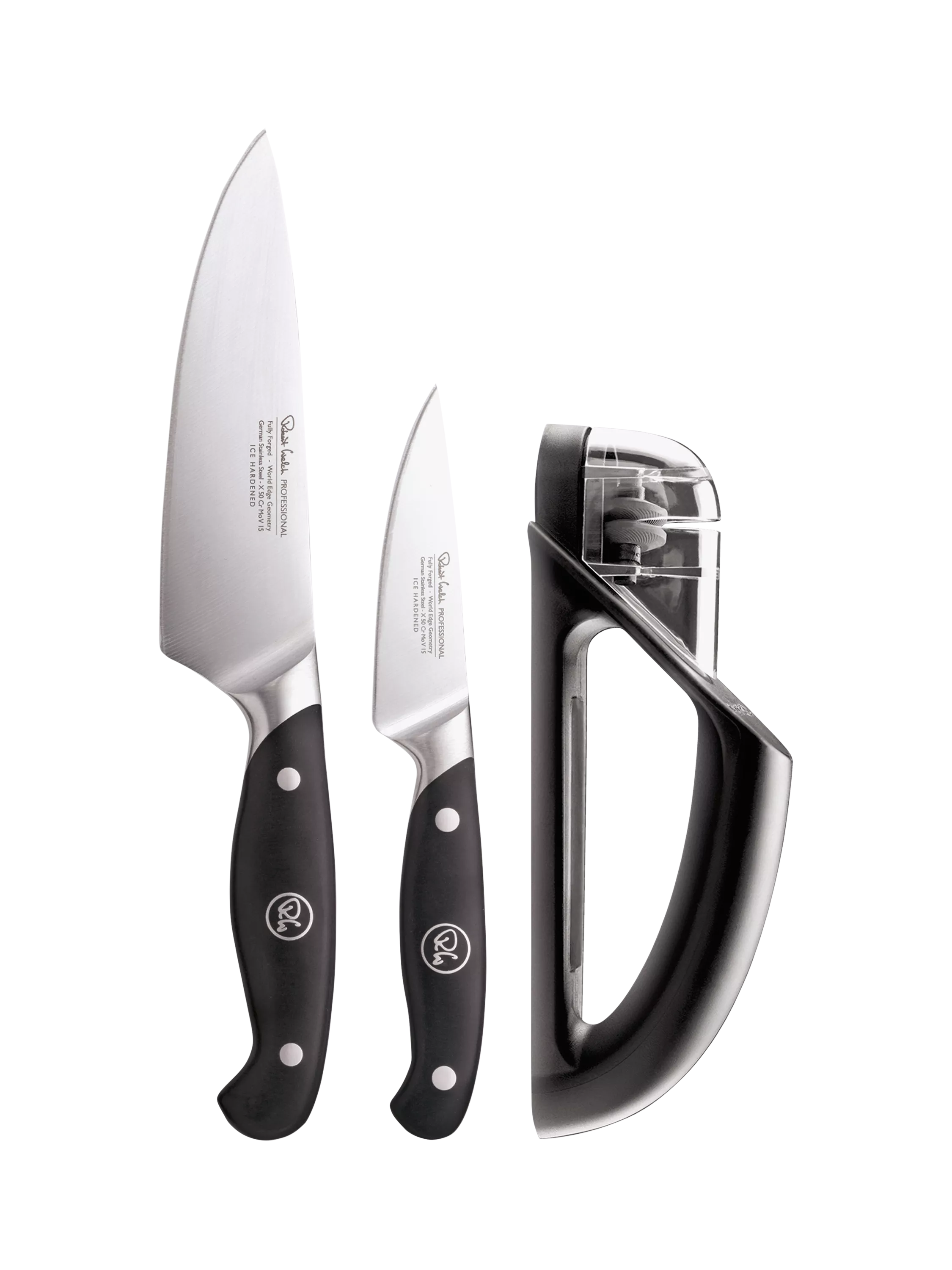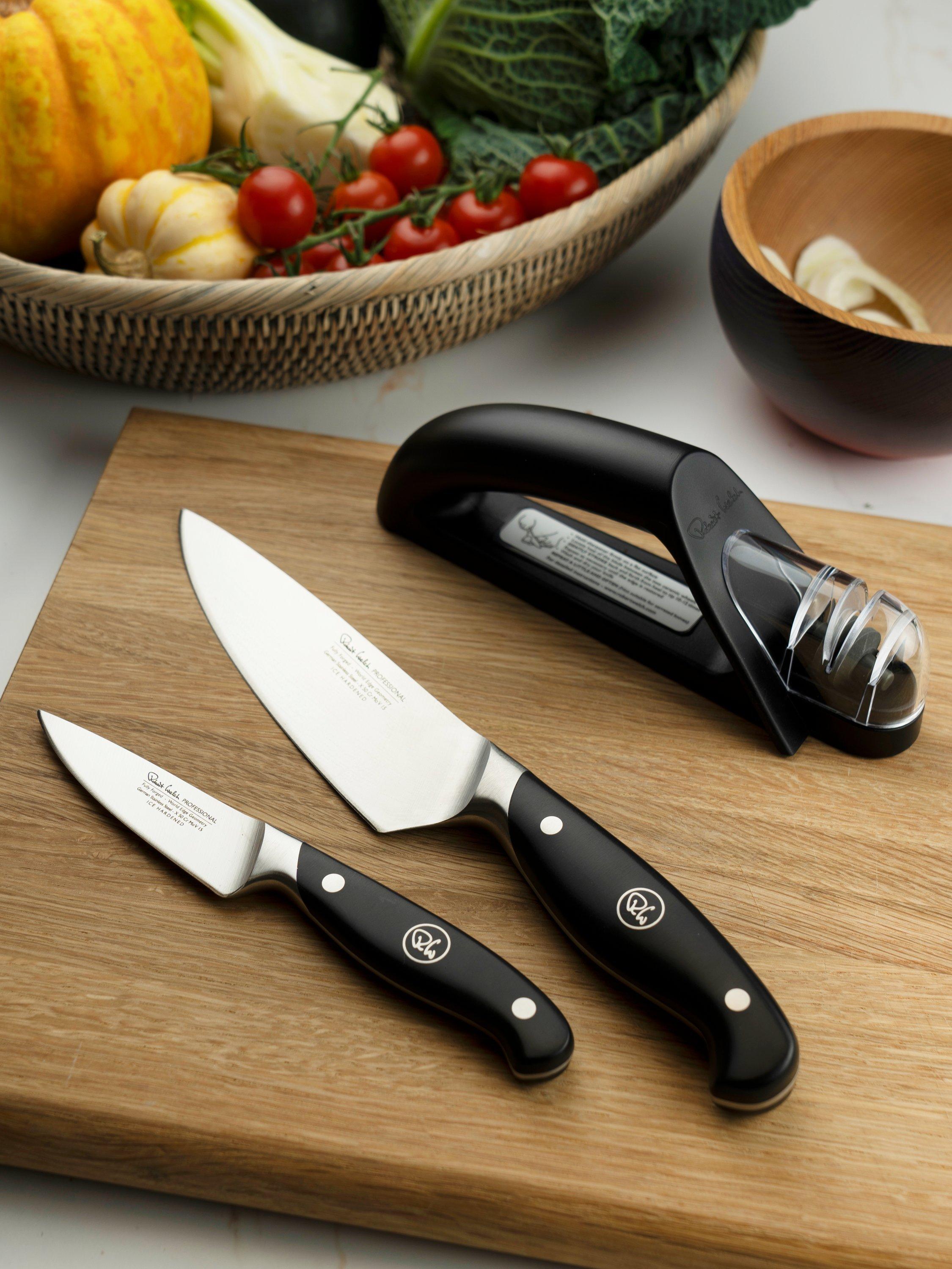 Robert WelchProfessional Kitchen Knives with Handheld Knife Sharpener Set, 3 Piece