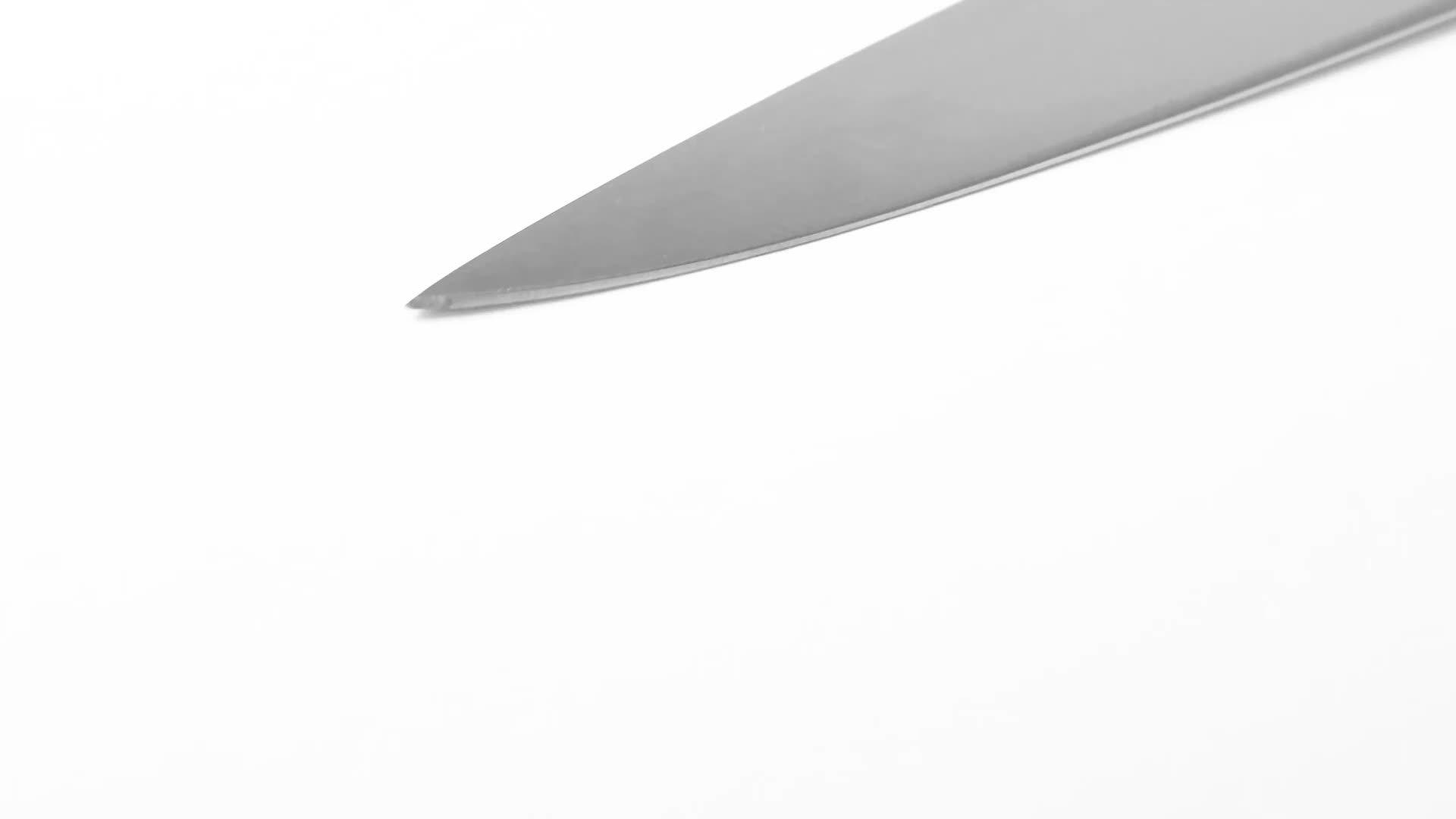 Made from a single piece of stainless steel for durability and strength, this fully forged 22cm-blade carving knife is precision sharpened and completed with a comfortable riveted handle. It's weighted and angled for balance in the hand and effortless cutting.